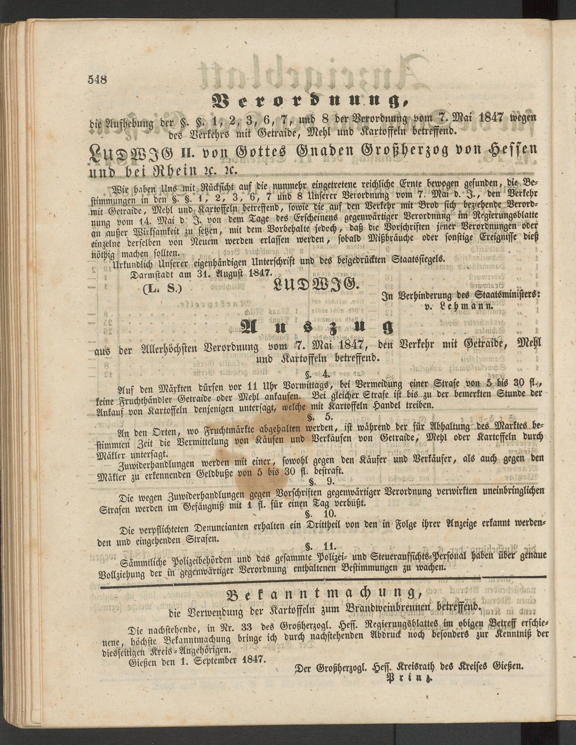 Anzeigeblatt für die Provinzialhauptstadt Gießen. 1840-1867