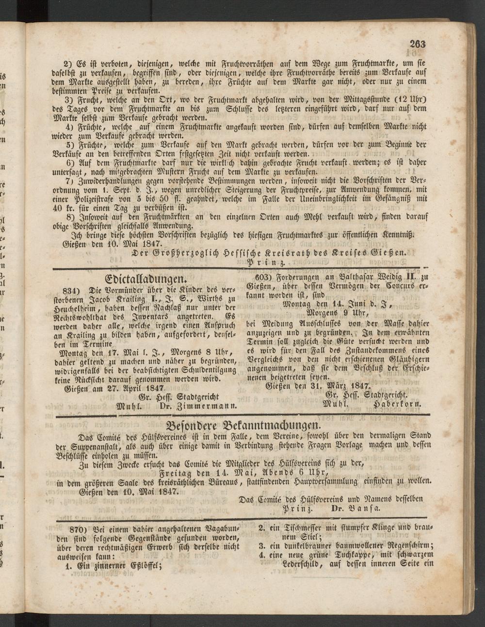 Anzeigeblatt für die Provinzialhauptstadt Gießen. 1840-1867