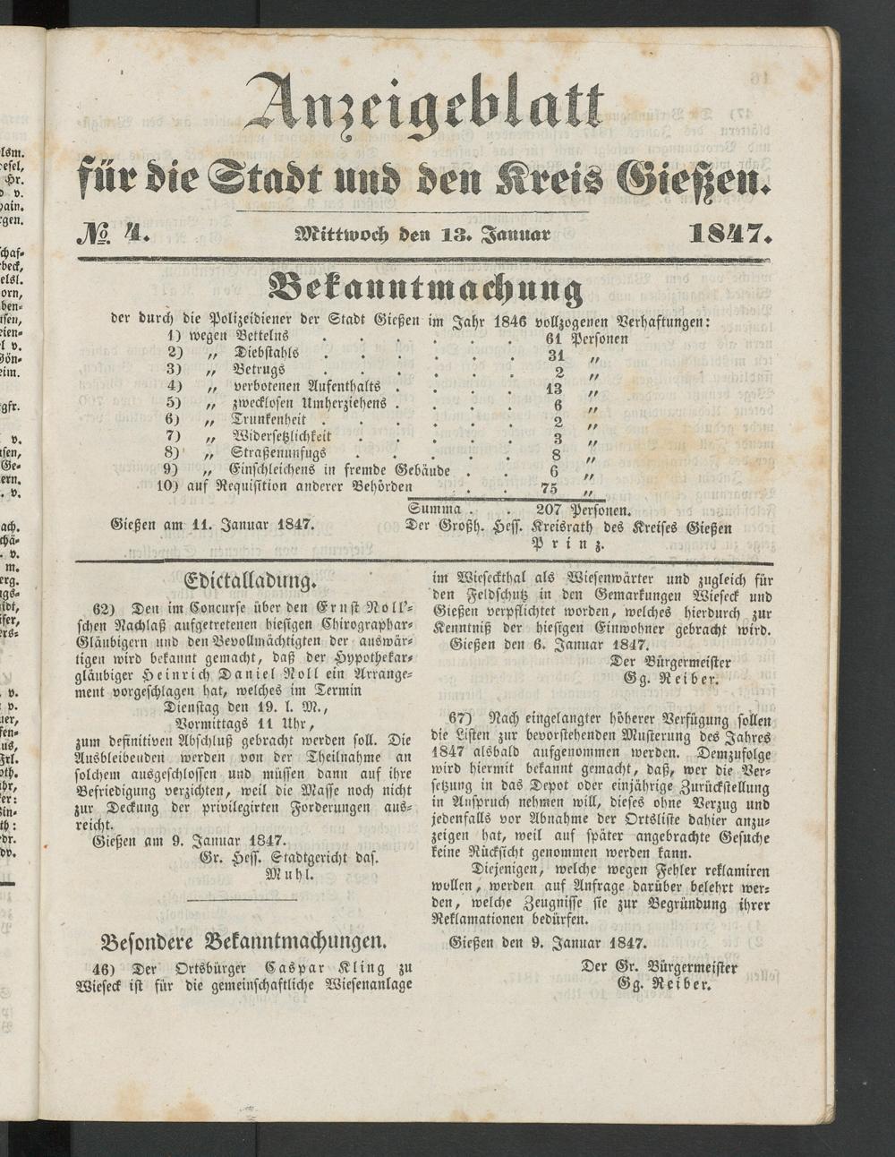 Anzeigeblatt für die Provinzialhauptstadt Gießen. 1840-1867