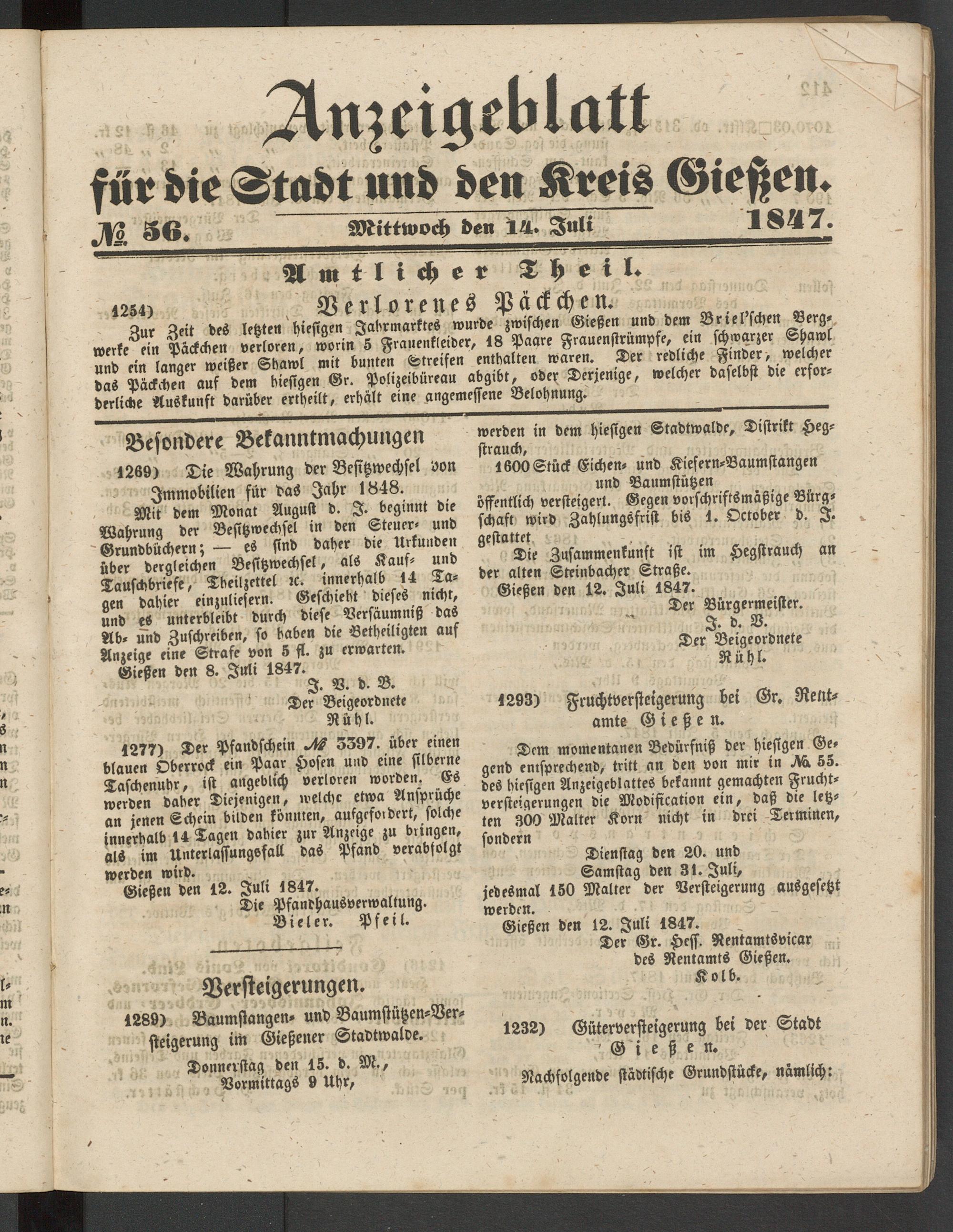 Anzeigeblatt für die Provinzialhauptstadt Gießen. 1840-1867
