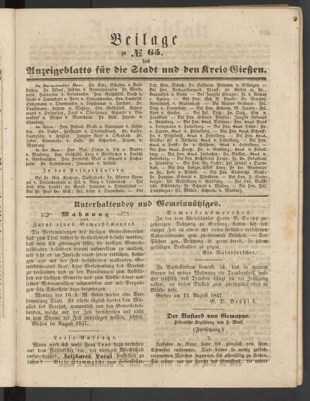 Anzeigeblatt für die Provinzialhauptstadt Gießen. 1840-1867