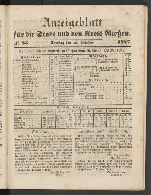 Anzeigeblatt für die Provinzialhauptstadt Gießen. 1840-1867