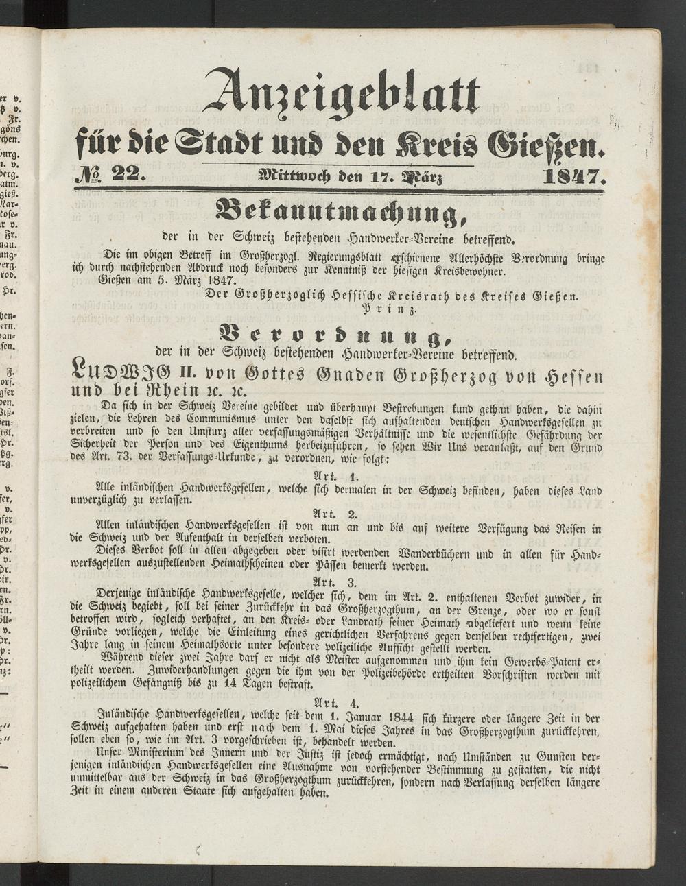 Anzeigeblatt für die Provinzialhauptstadt Gießen. 1840-1867