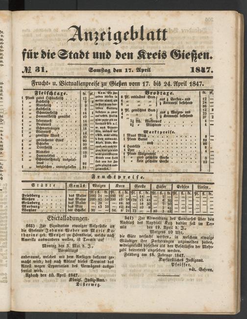 Anzeigeblatt für die Provinzialhauptstadt Gießen. 1840-1867
