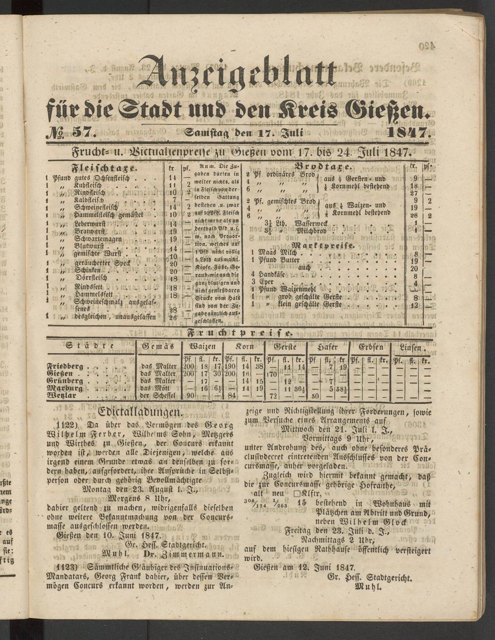 Anzeigeblatt für die Provinzialhauptstadt Gießen. 1840-1867