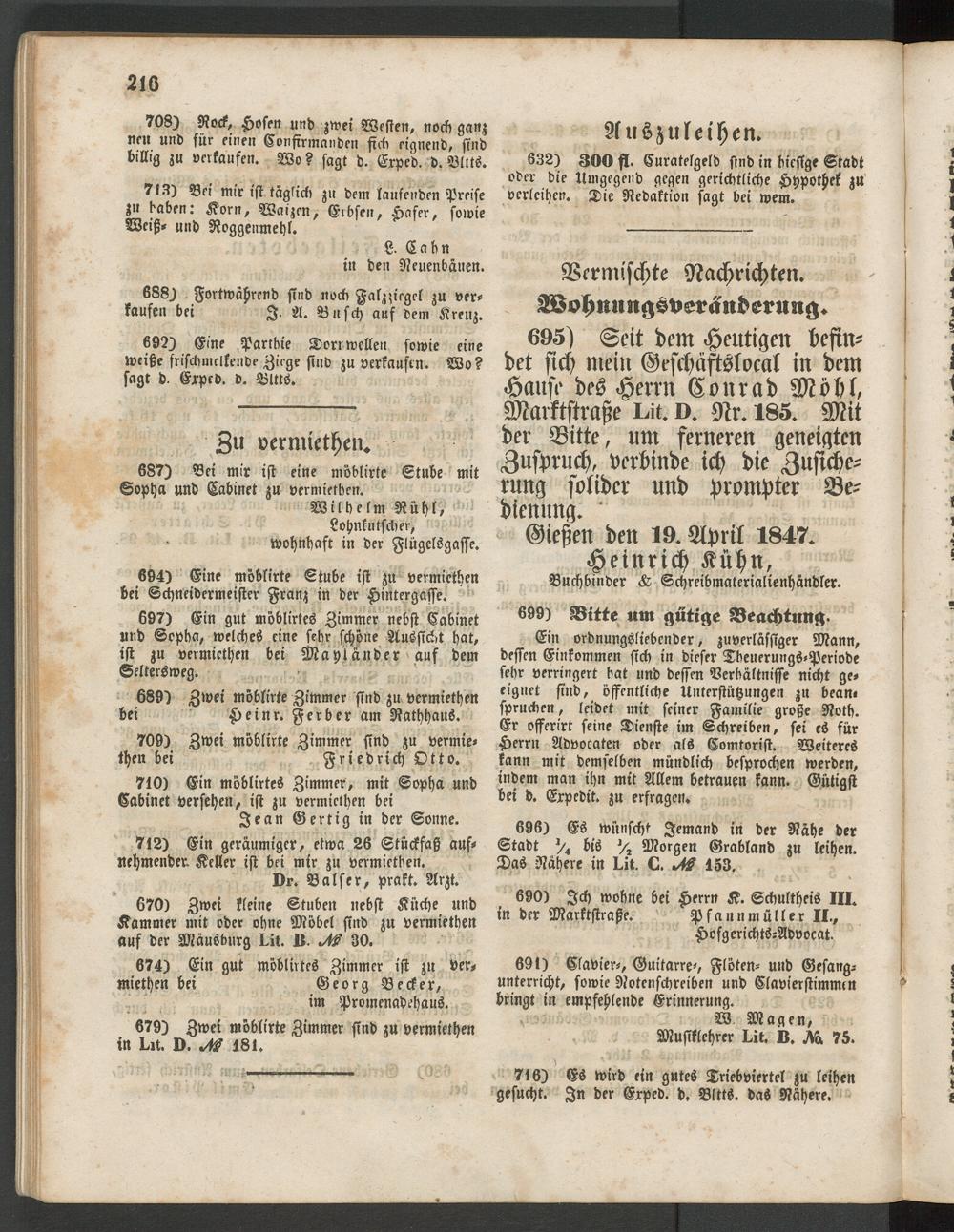 Anzeigeblatt für die Provinzialhauptstadt Gießen. 1840-1867