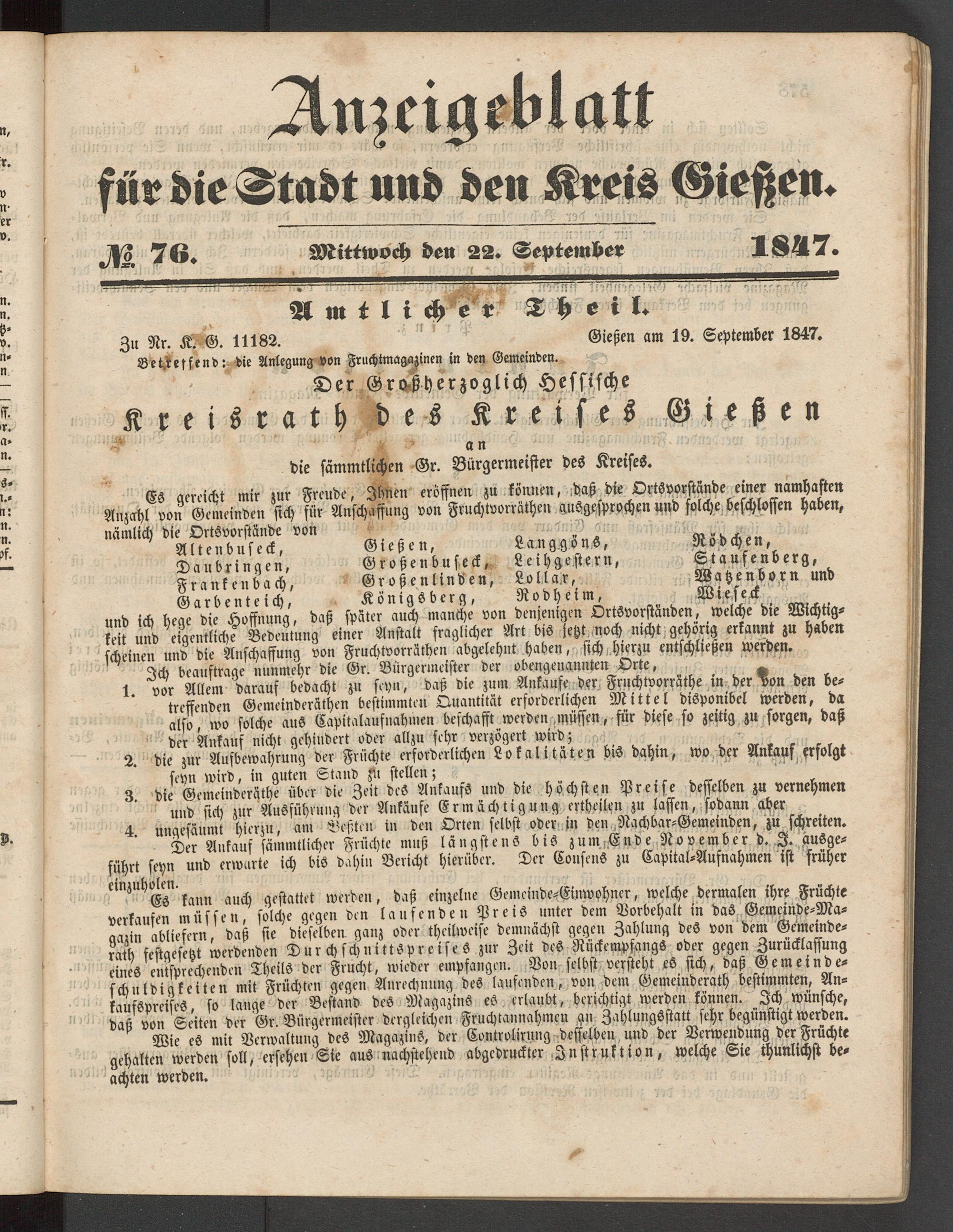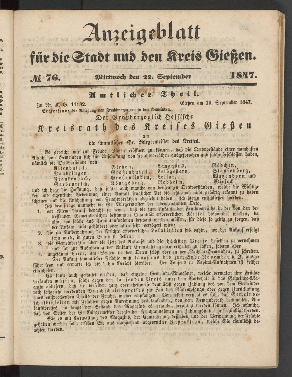 Anzeigeblatt für die Provinzialhauptstadt Gießen. 1840-1867