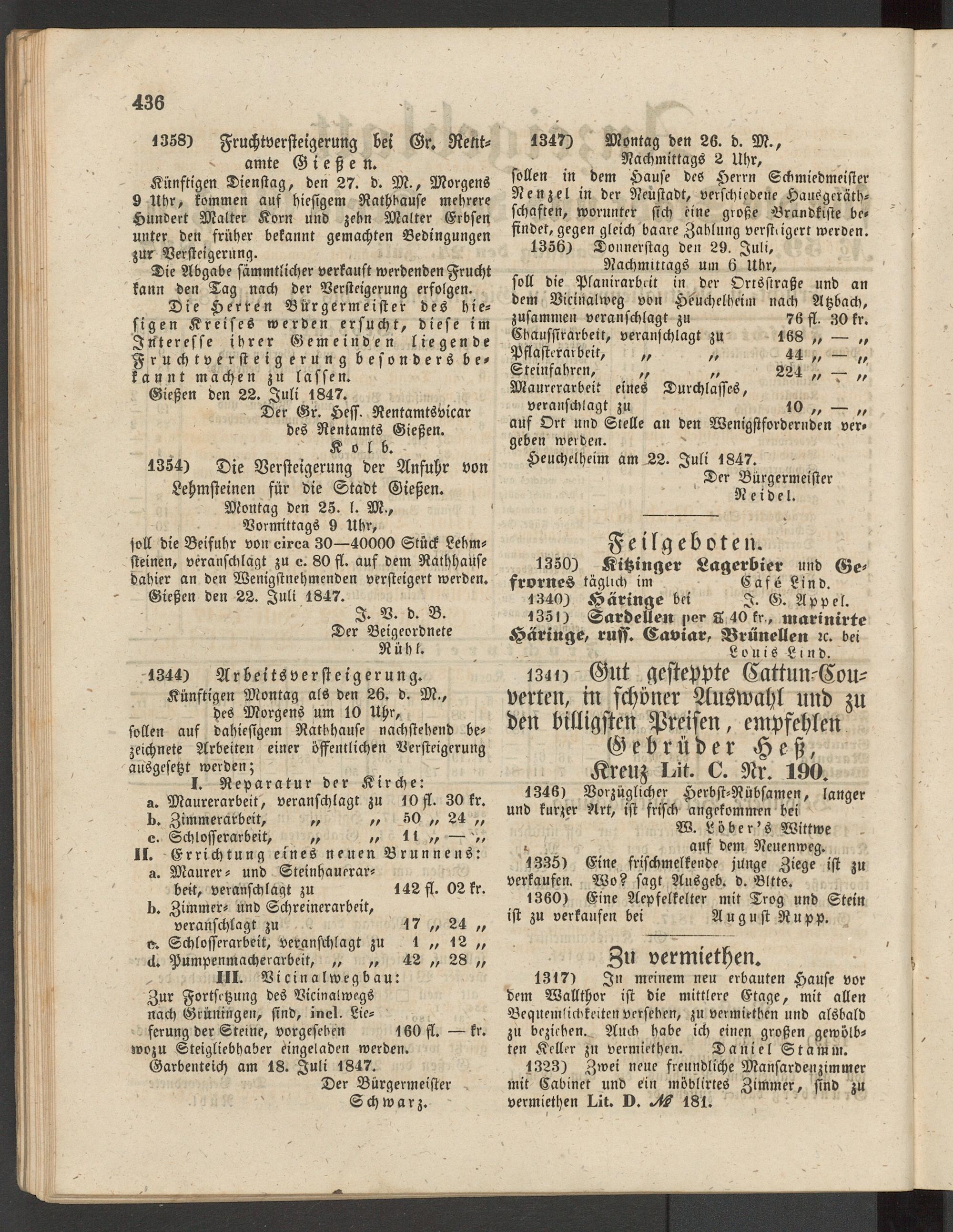 Anzeigeblatt für die Provinzialhauptstadt Gießen. 1840-1867