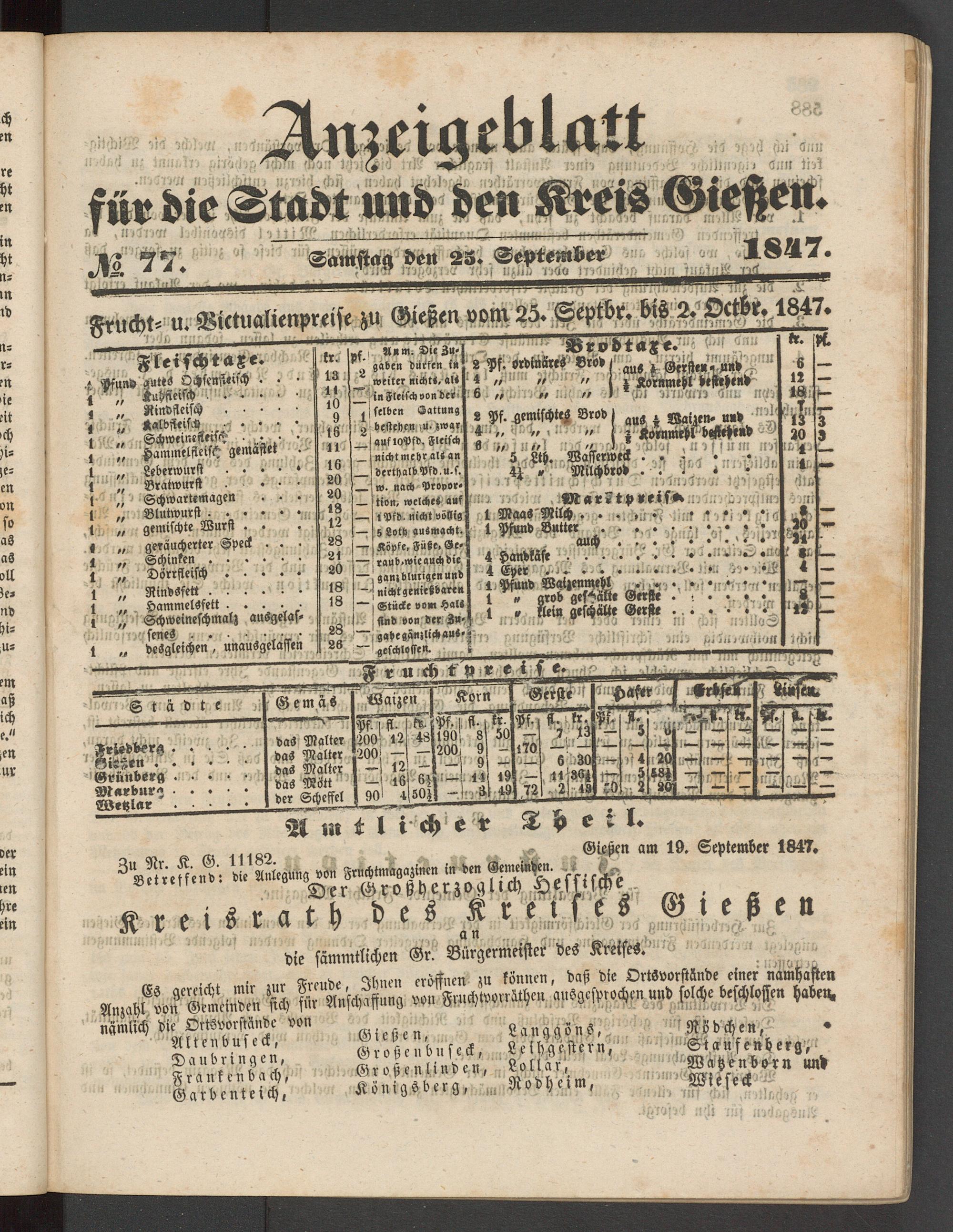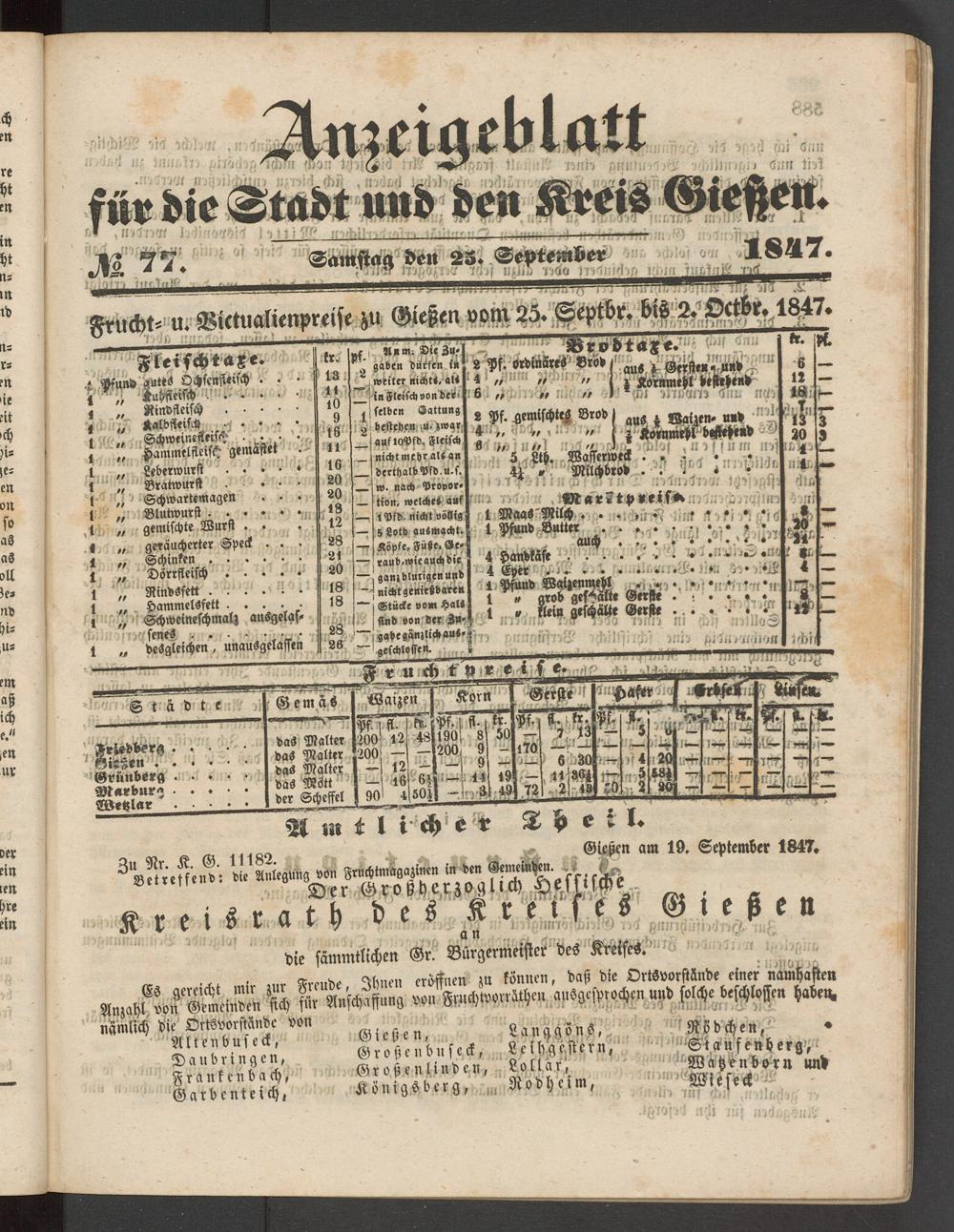 Anzeigeblatt für die Provinzialhauptstadt Gießen. 1840-1867