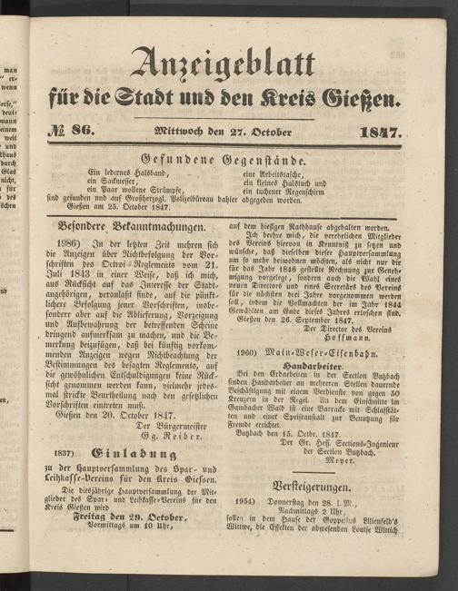 Anzeigeblatt für die Provinzialhauptstadt Gießen. 1840-1867