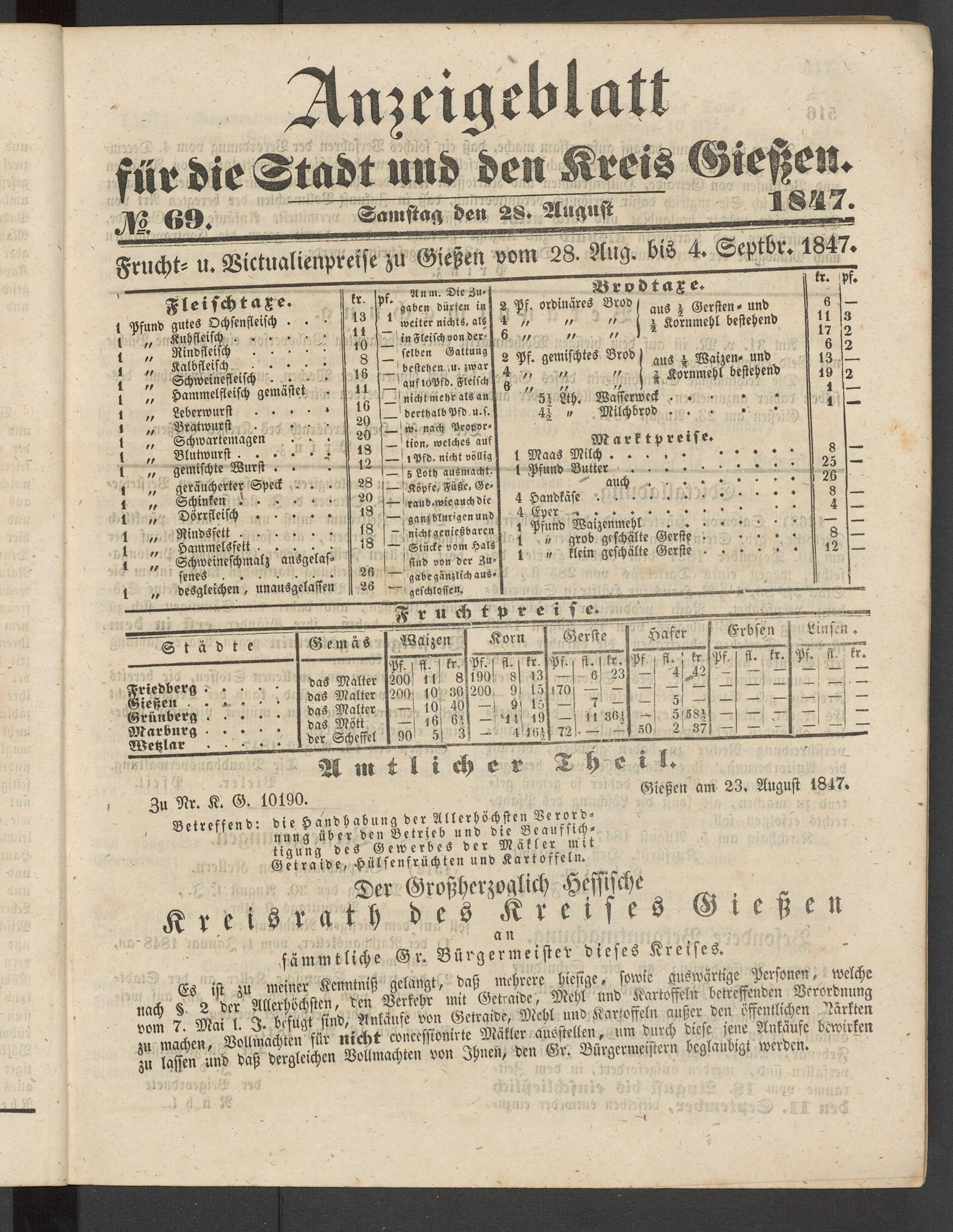 Anzeigeblatt für die Provinzialhauptstadt Gießen. 1840-1867