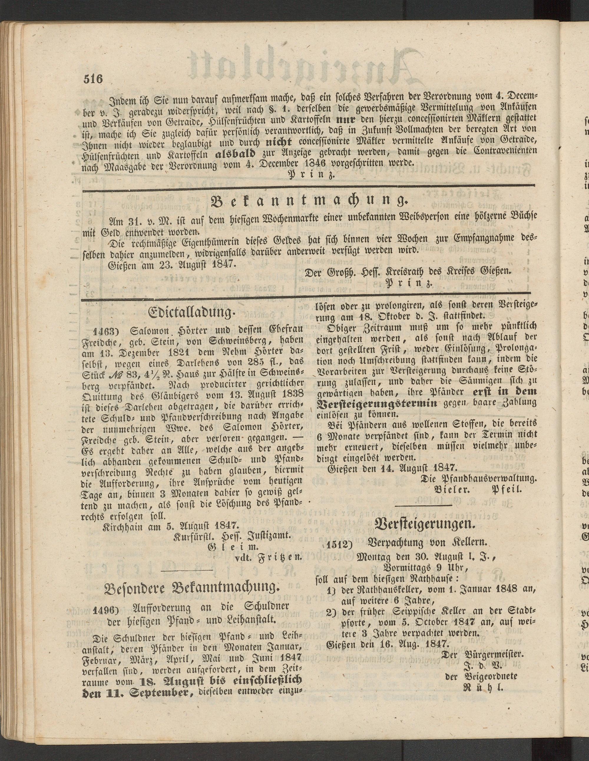 Anzeigeblatt für die Provinzialhauptstadt Gießen. 1840-1867