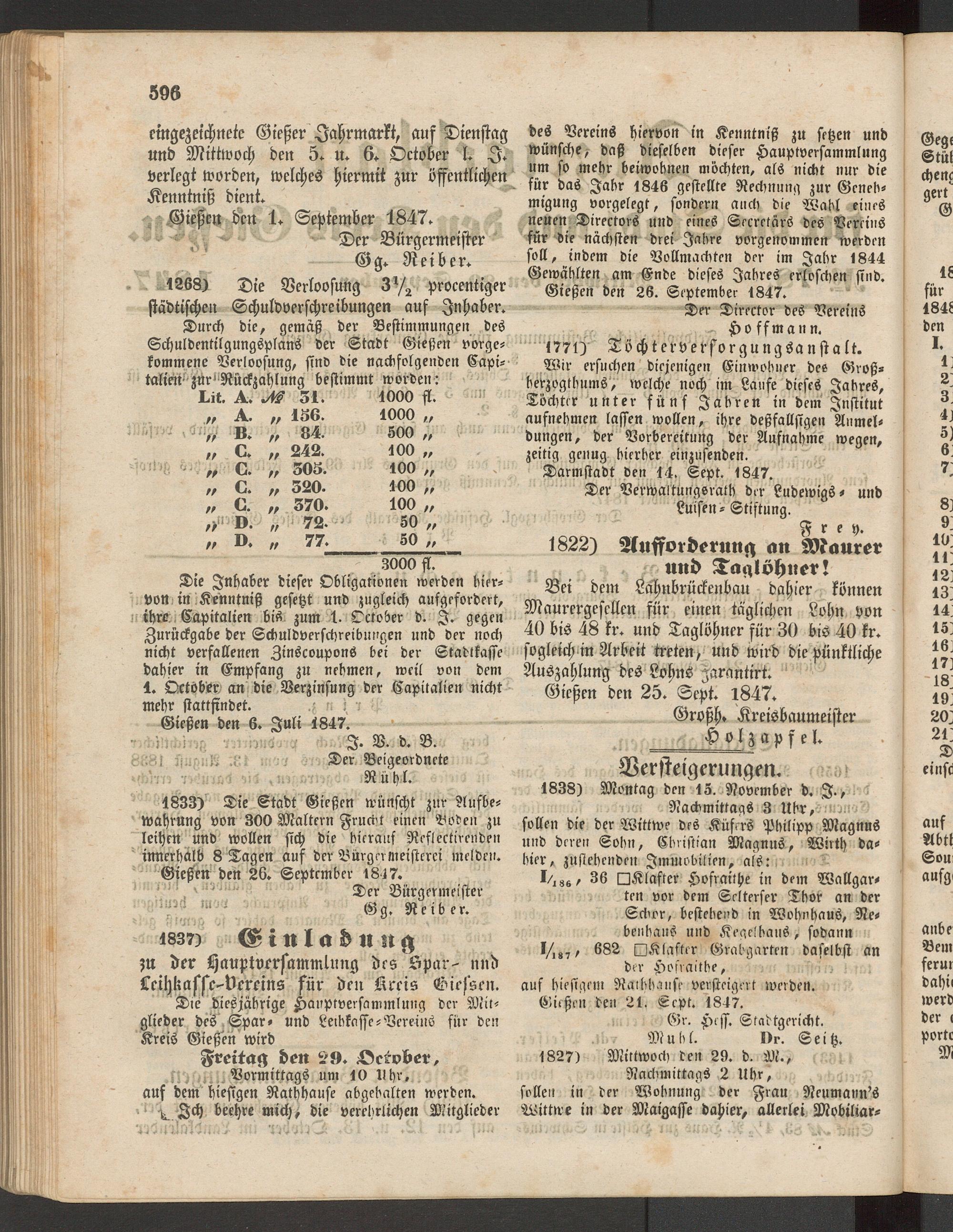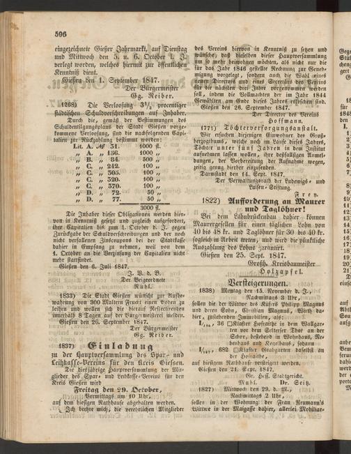 Anzeigeblatt für die Provinzialhauptstadt Gießen. 1840-1867