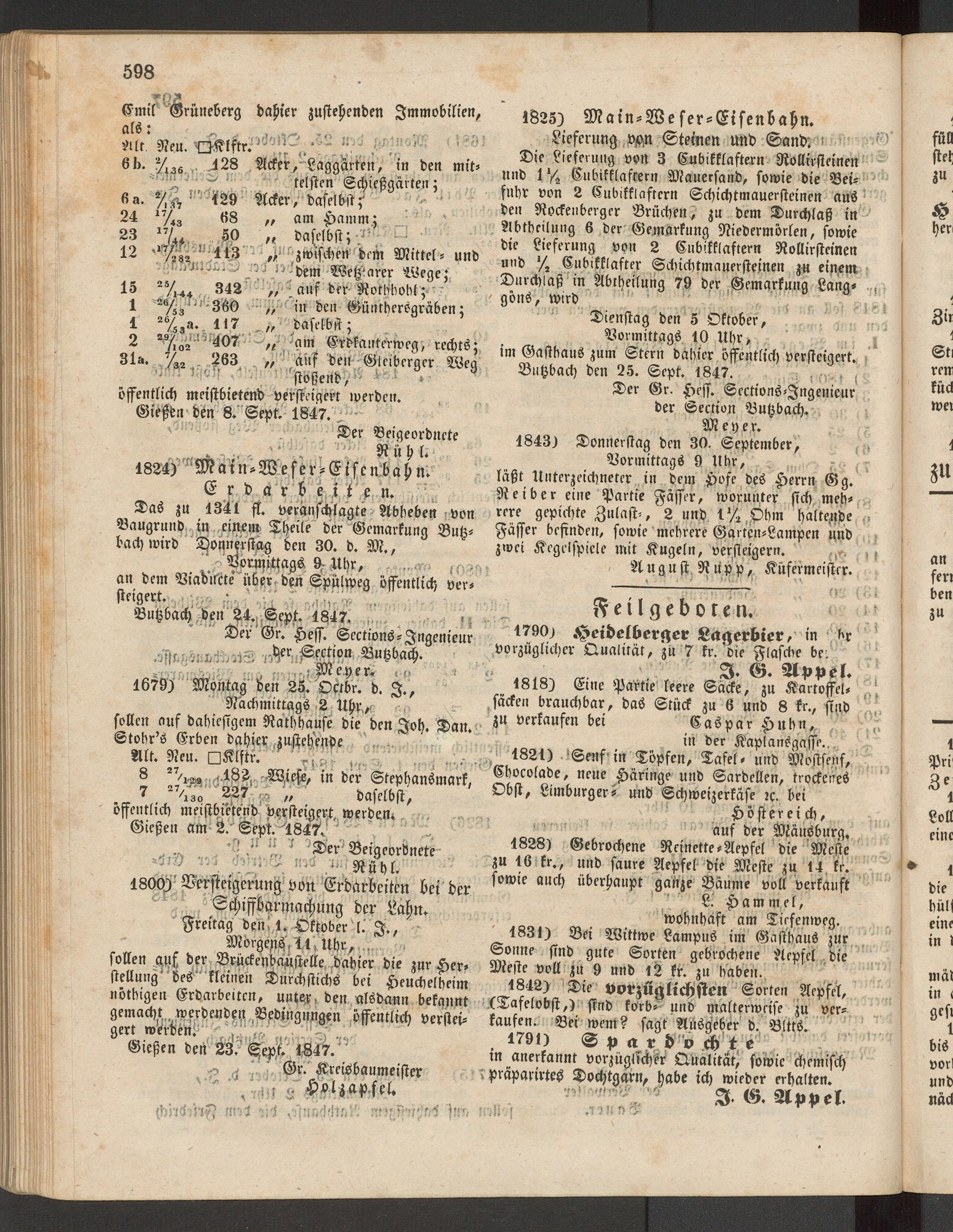 Anzeigeblatt für die Provinzialhauptstadt Gießen. 1840-1867
