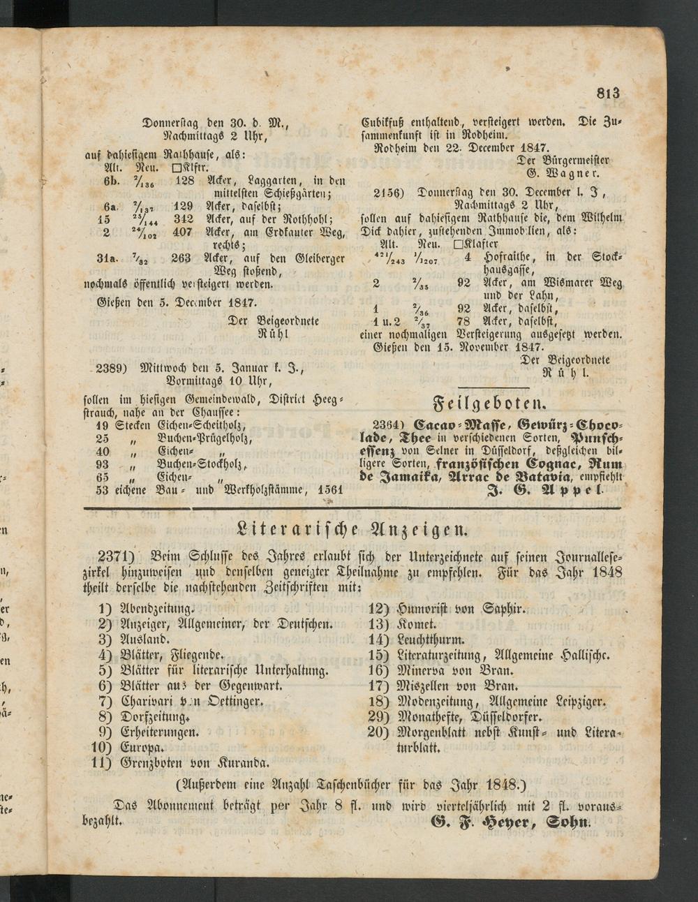 Anzeigeblatt für die Provinzialhauptstadt Gießen. 1840-1867