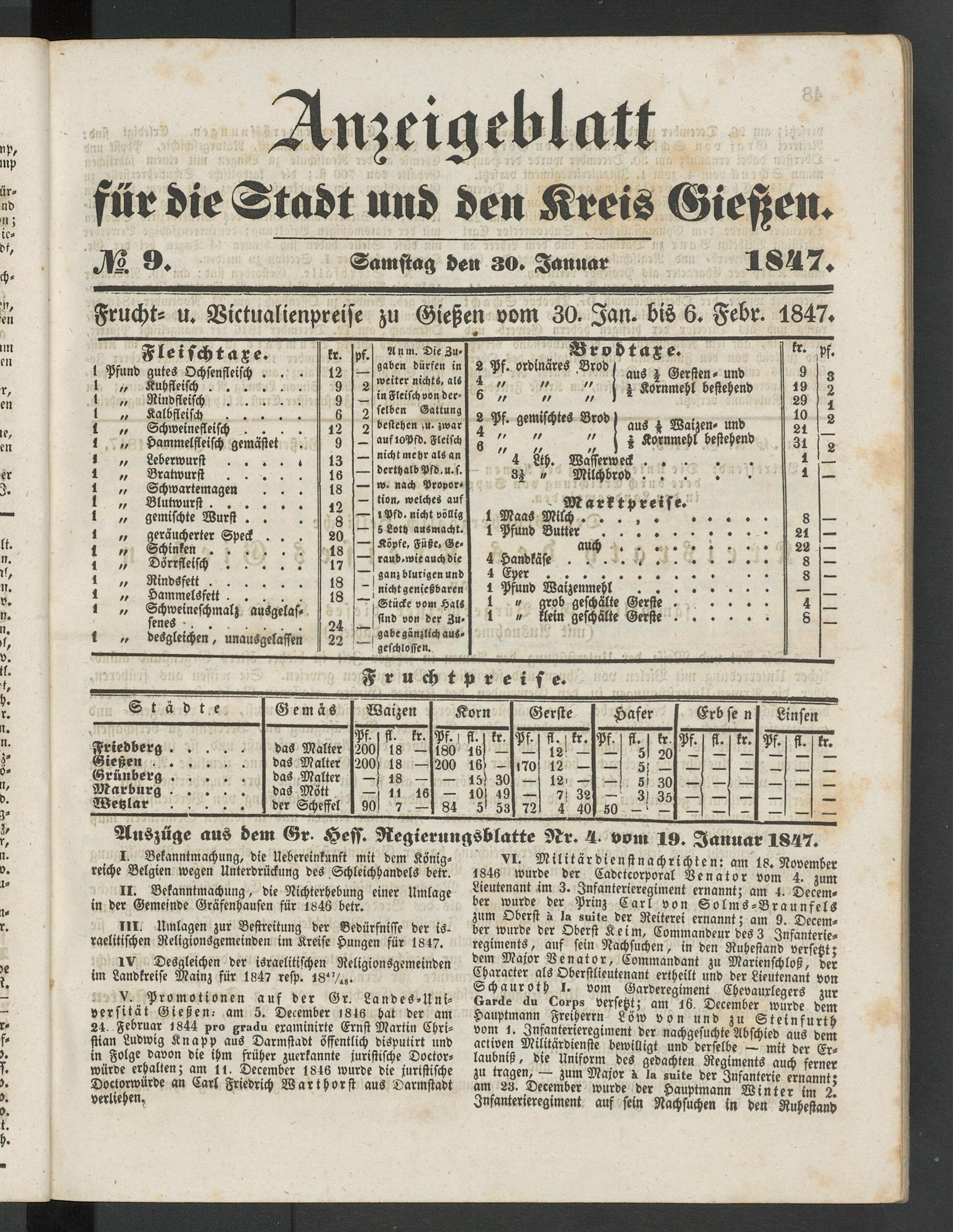 Anzeigeblatt für die Provinzialhauptstadt Gießen. 1840-1867