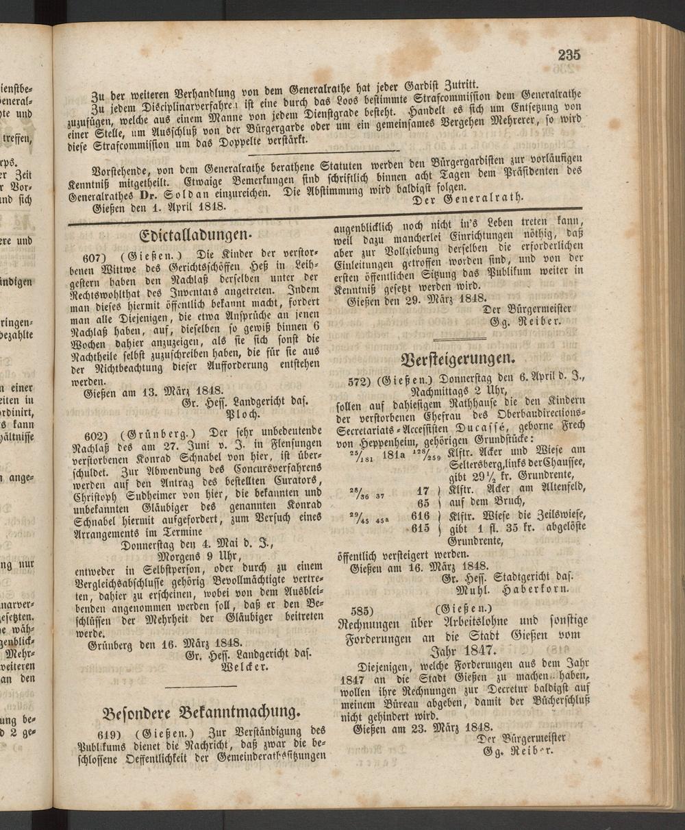 Anzeigeblatt für die Provinzialhauptstadt Gießen. 1840-1867