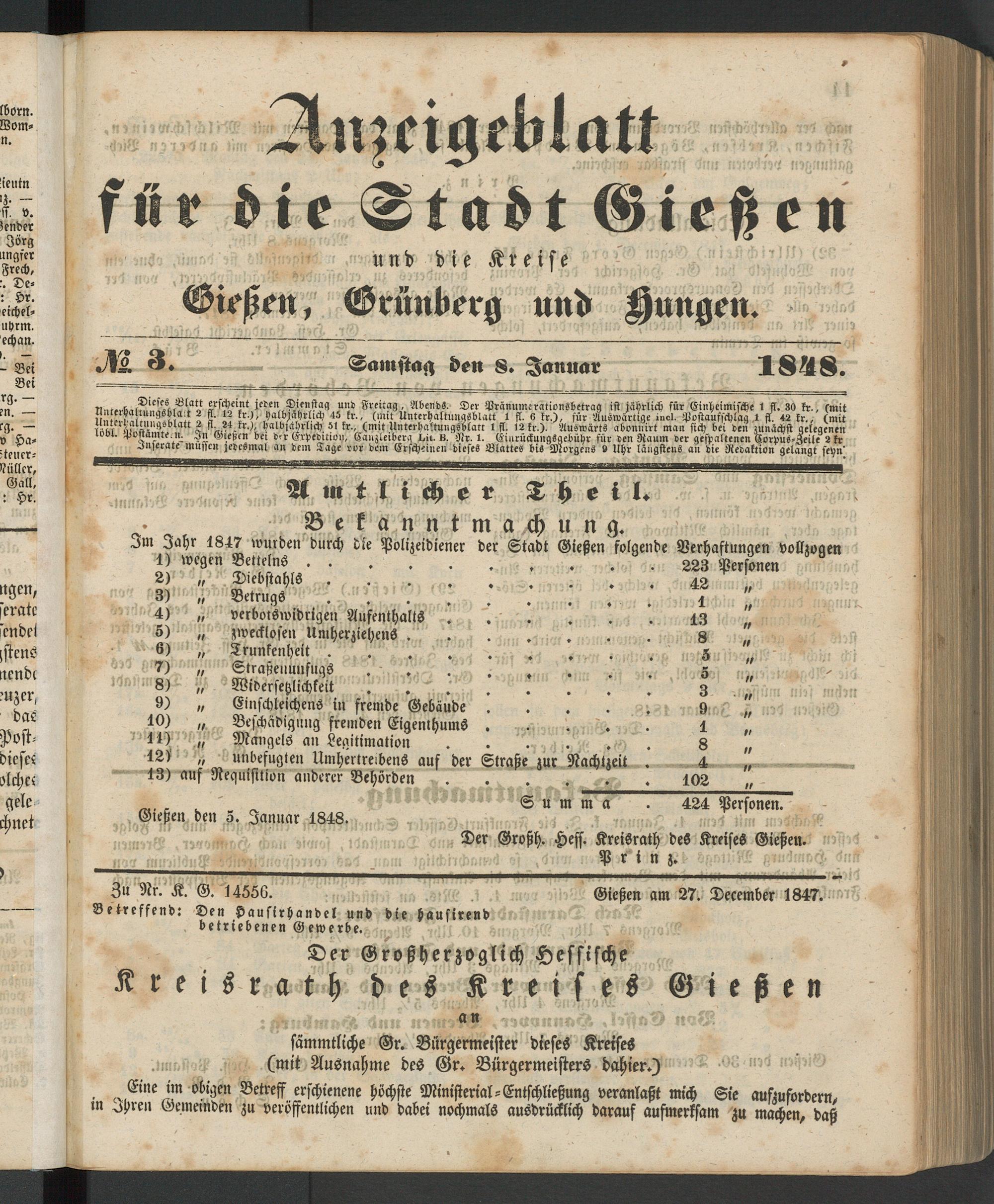 Anzeigeblatt für die Provinzialhauptstadt Gießen. 1840-1867