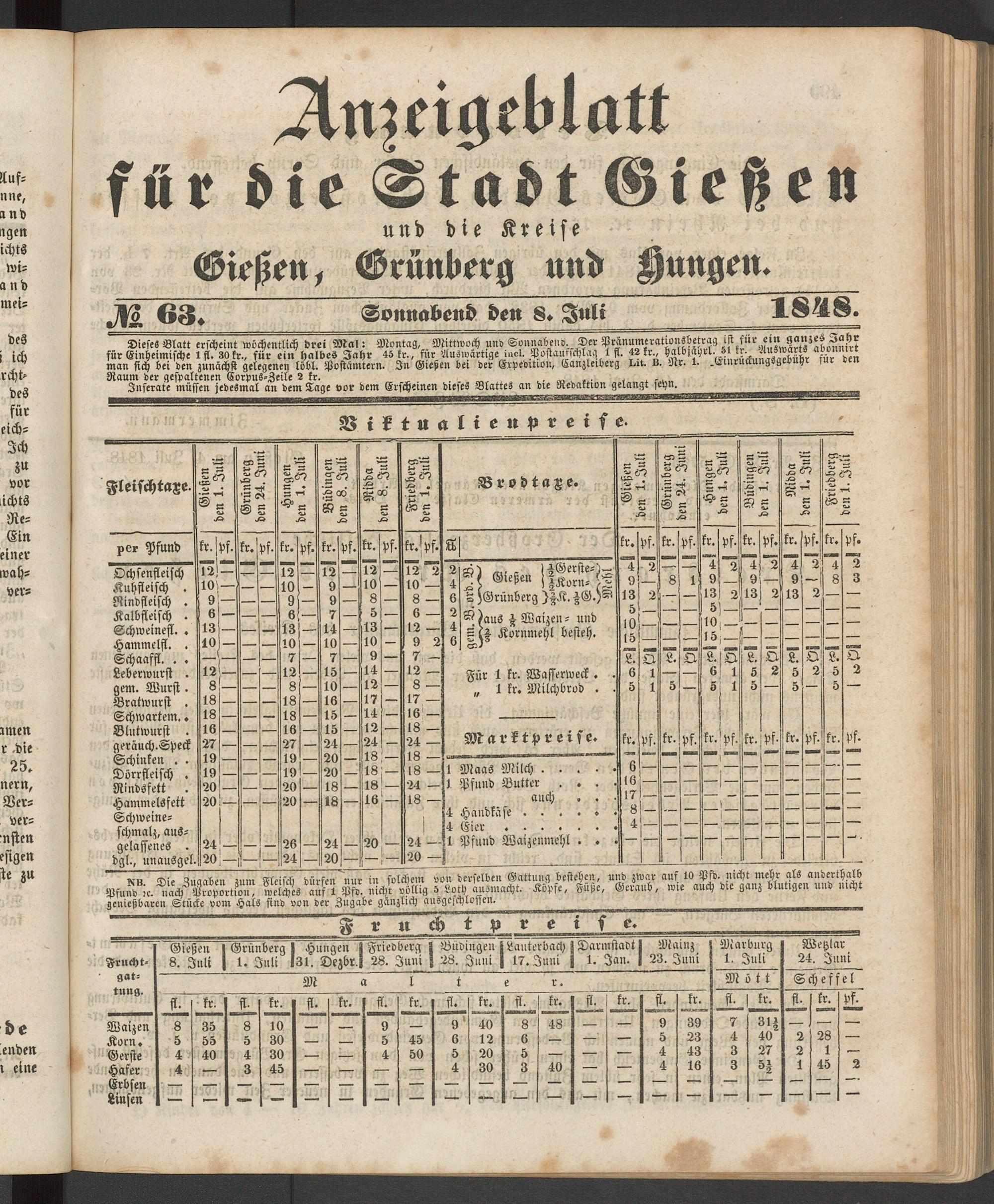 Anzeigeblatt für die Provinzialhauptstadt Gießen. 1840-1867