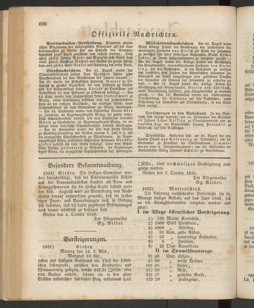 Anzeigeblatt für die Provinzialhauptstadt Gießen. 1840-1867