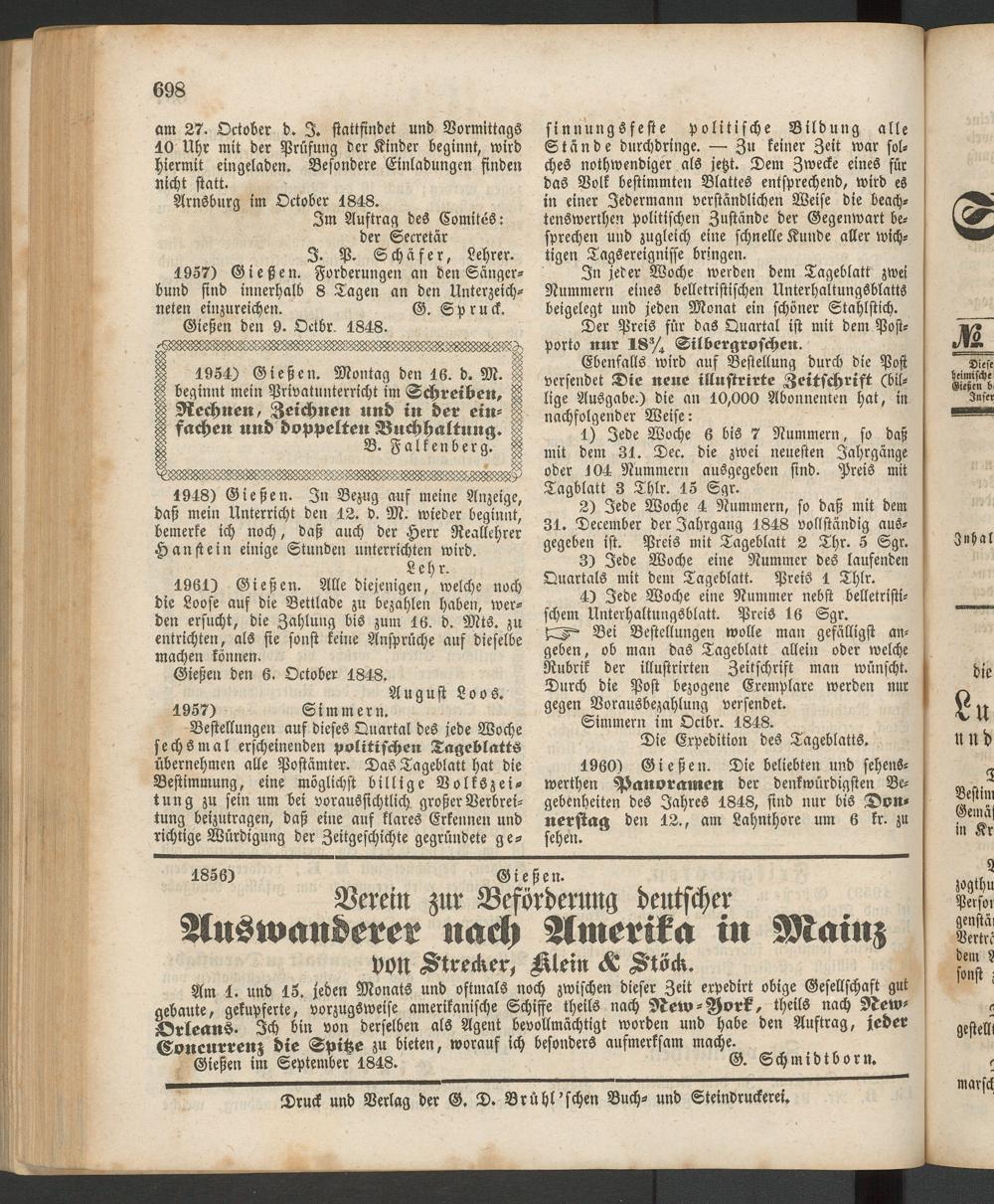 Anzeigeblatt für die Provinzialhauptstadt Gießen. 1840-1867