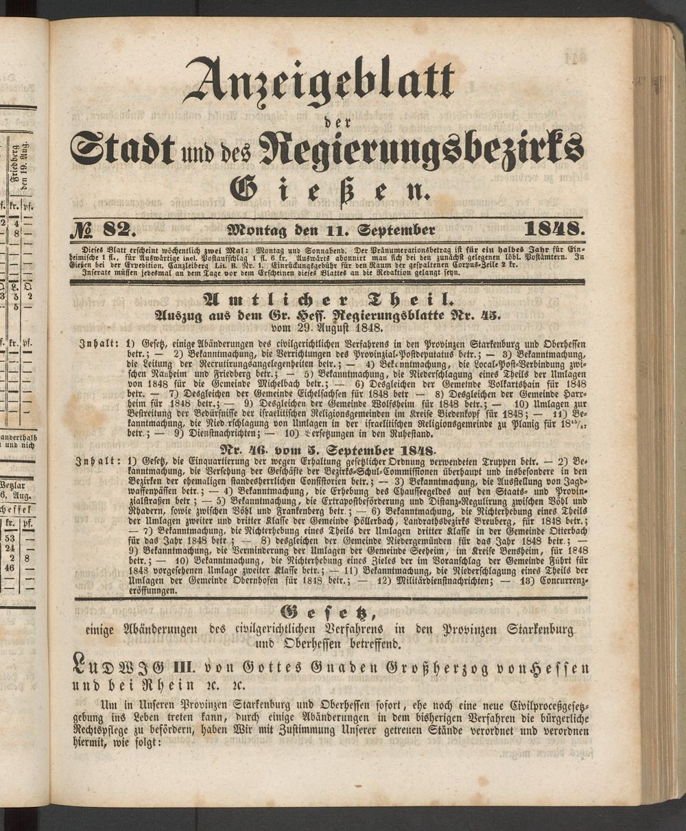 Anzeigeblatt für die Provinzialhauptstadt Gießen. 1840-1867