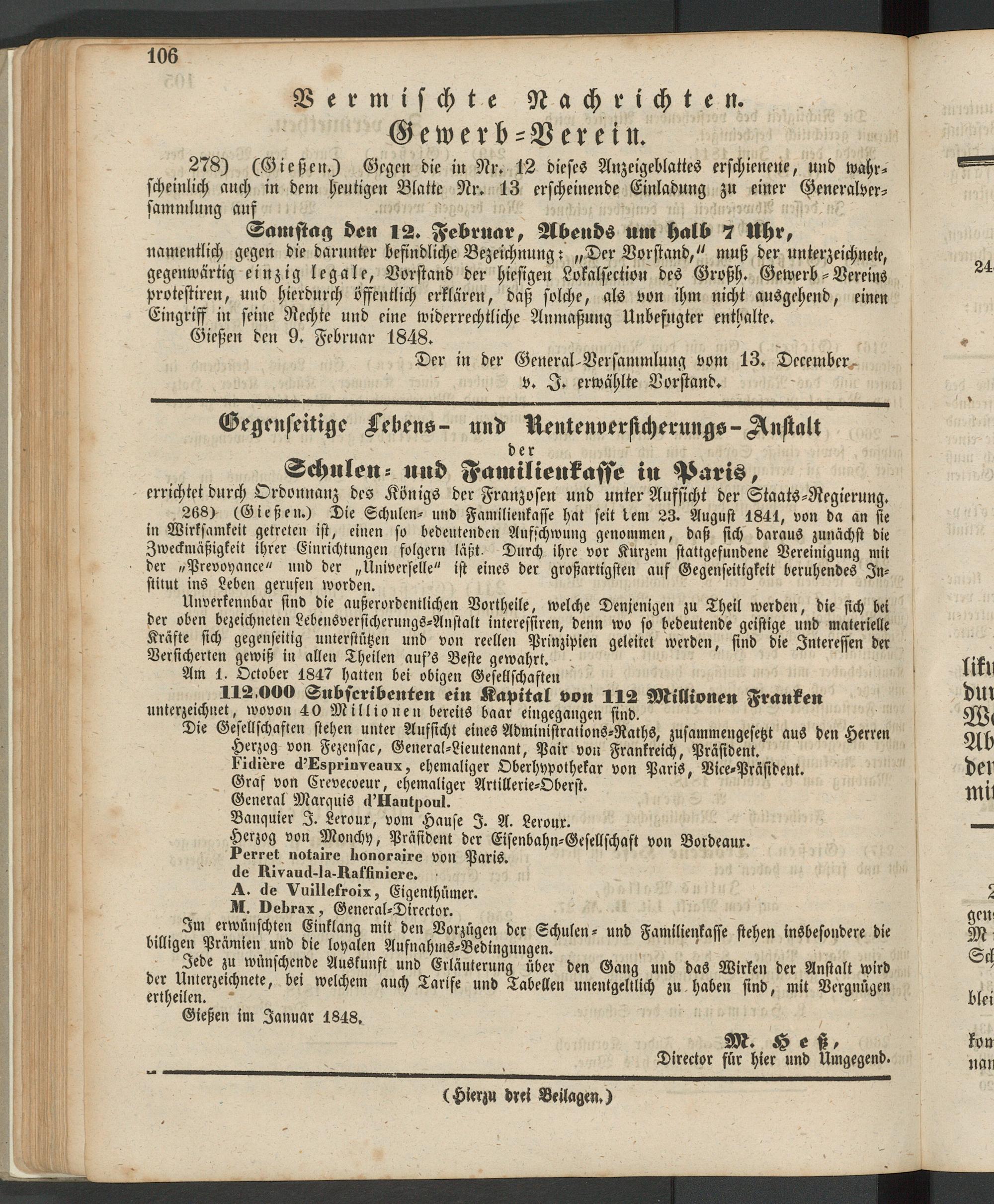Anzeigeblatt für die Provinzialhauptstadt Gießen. 1840-1867