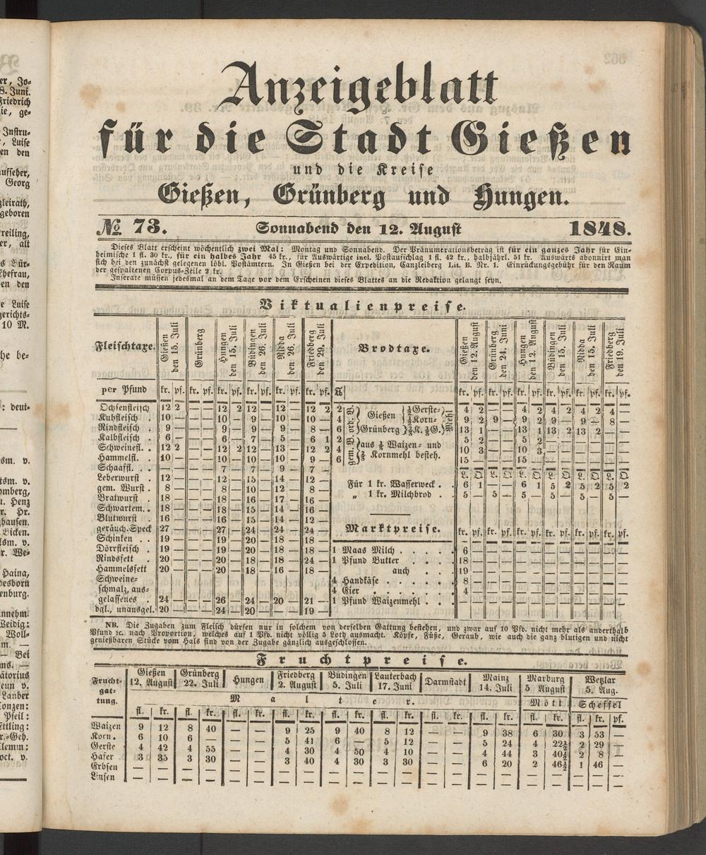 Anzeigeblatt für die Provinzialhauptstadt Gießen. 1840-1867