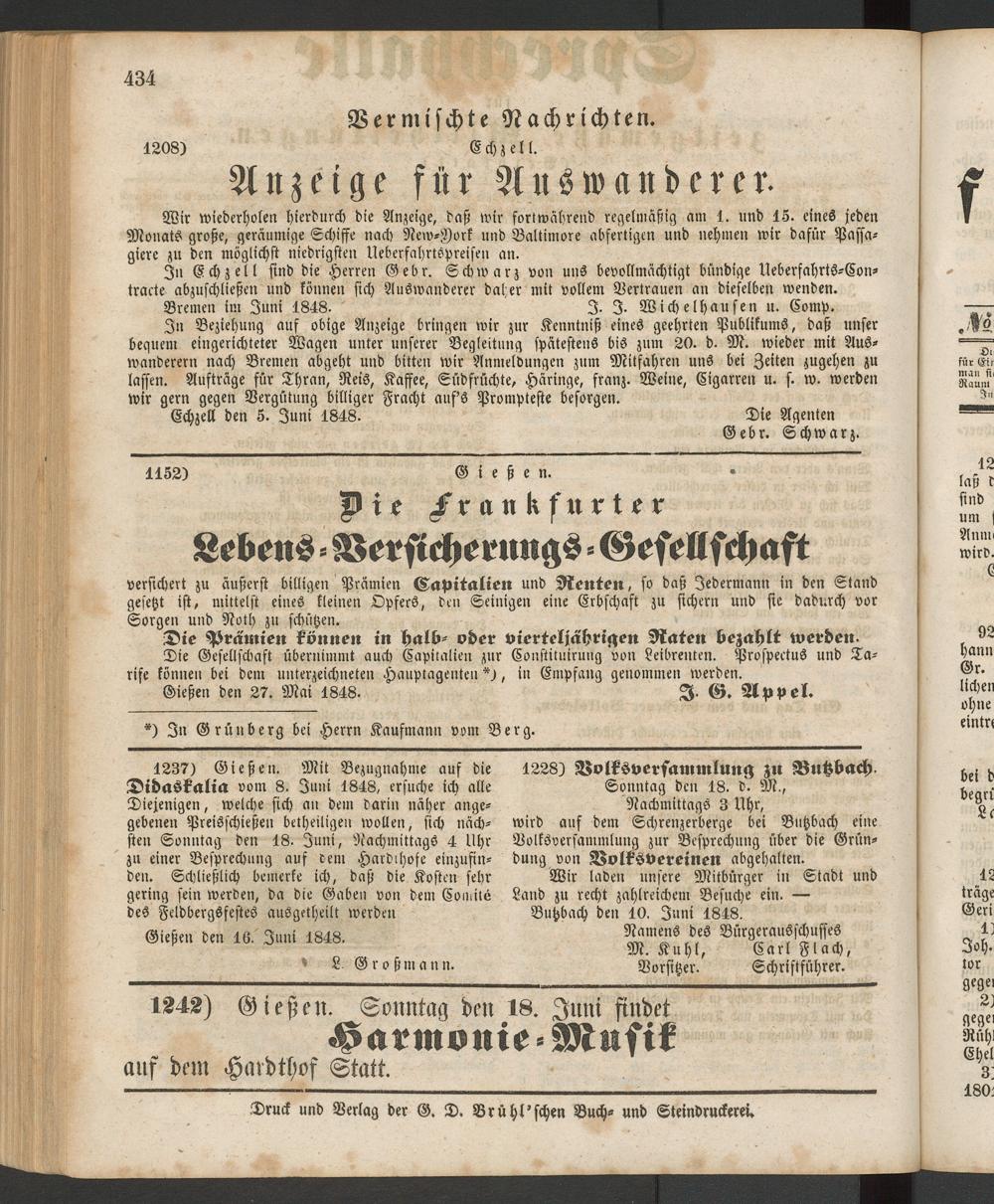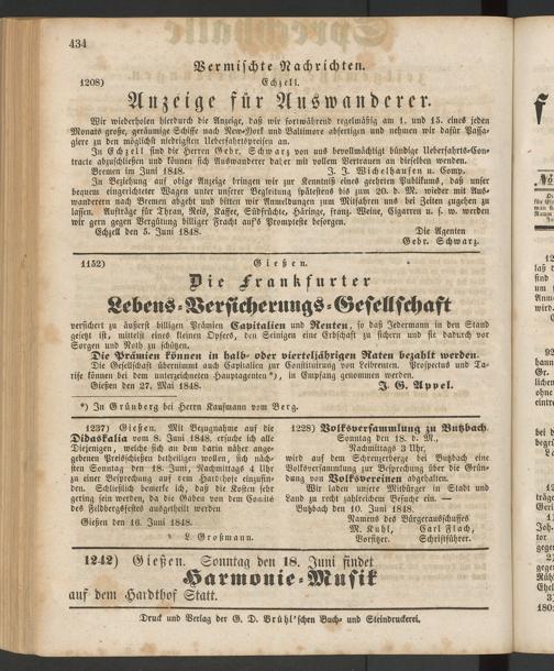 Anzeigeblatt für die Provinzialhauptstadt Gießen. 1840-1867