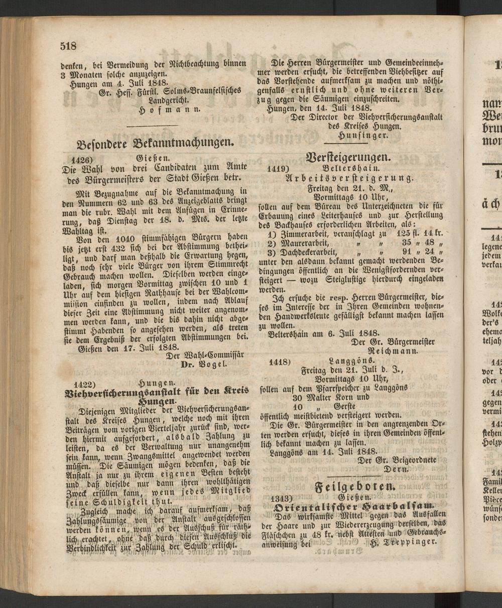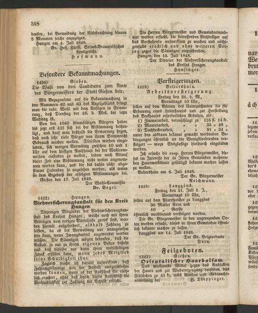 Anzeigeblatt für die Provinzialhauptstadt Gießen. 1840-1867