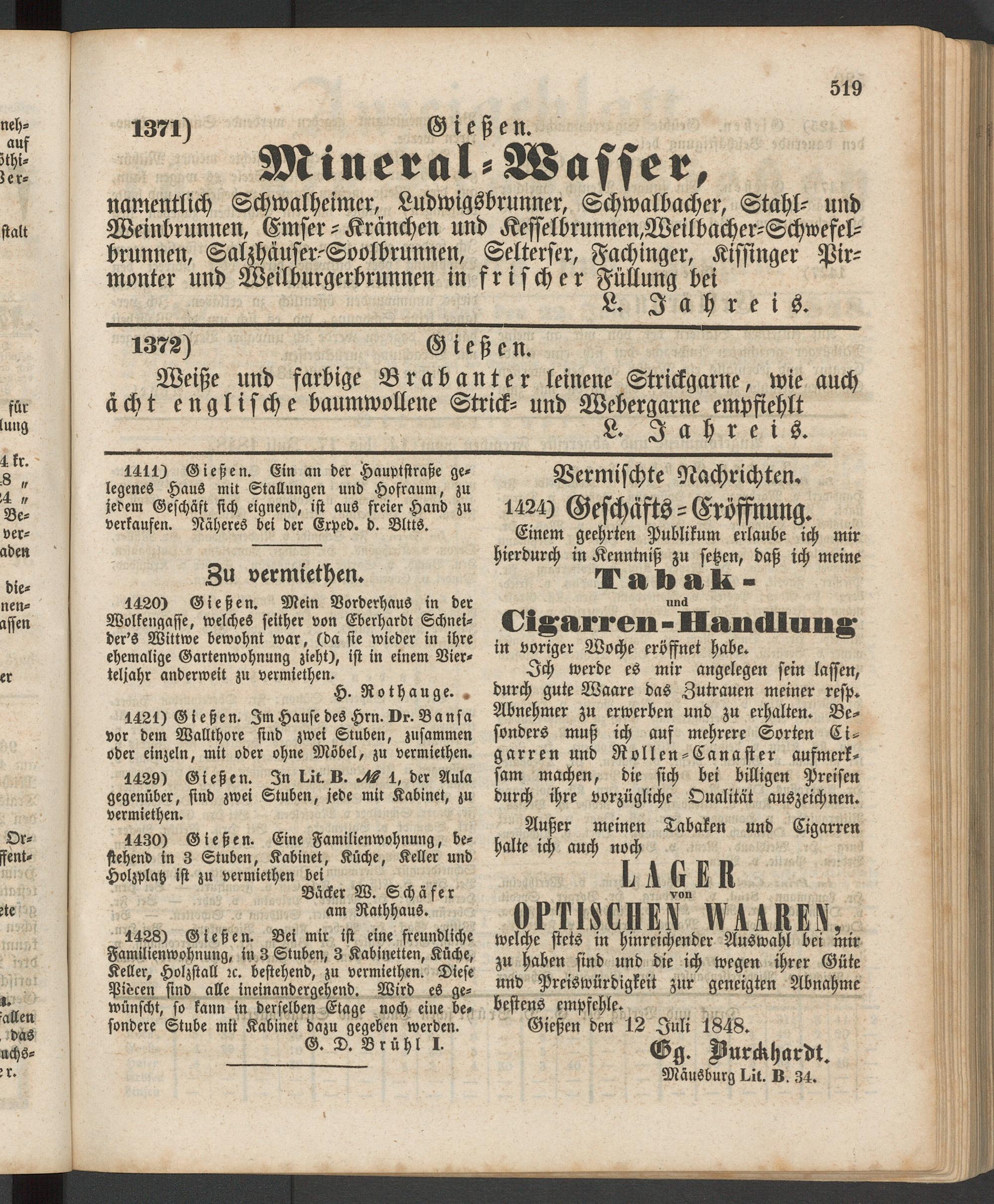 Anzeigeblatt für die Provinzialhauptstadt Gießen. 1840-1867