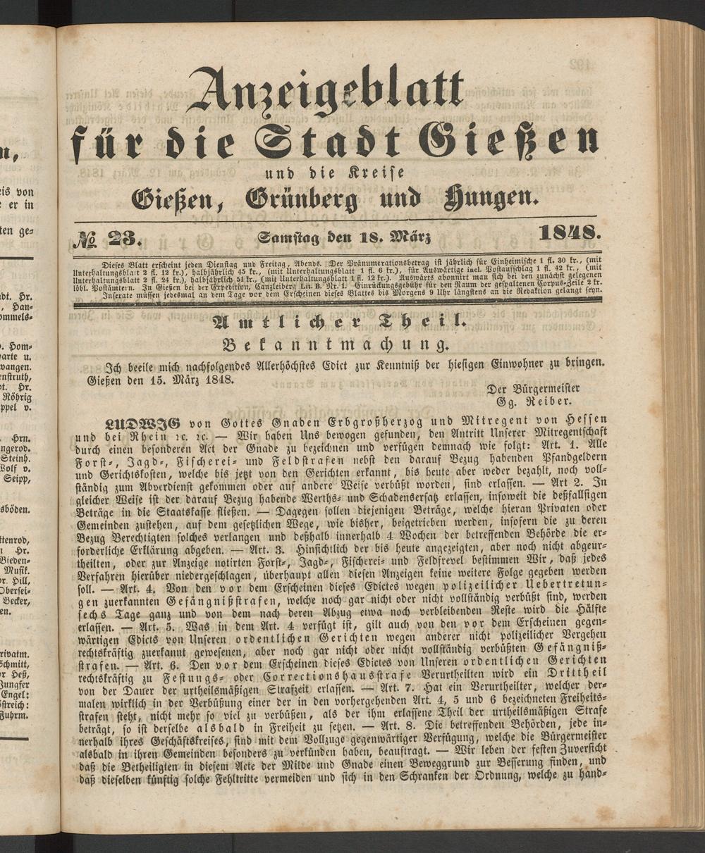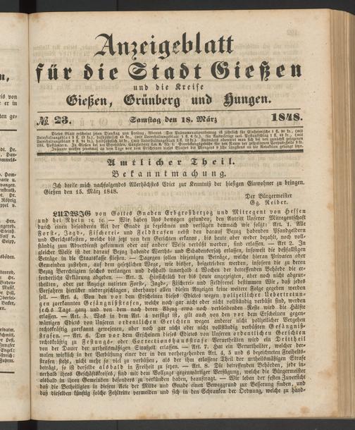 Anzeigeblatt für die Provinzialhauptstadt Gießen. 1840-1867