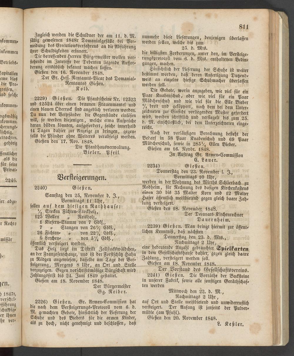 Anzeigeblatt für die Provinzialhauptstadt Gießen. 1840-1867