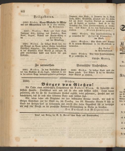 Anzeigeblatt für die Provinzialhauptstadt Gießen. 1840-1867