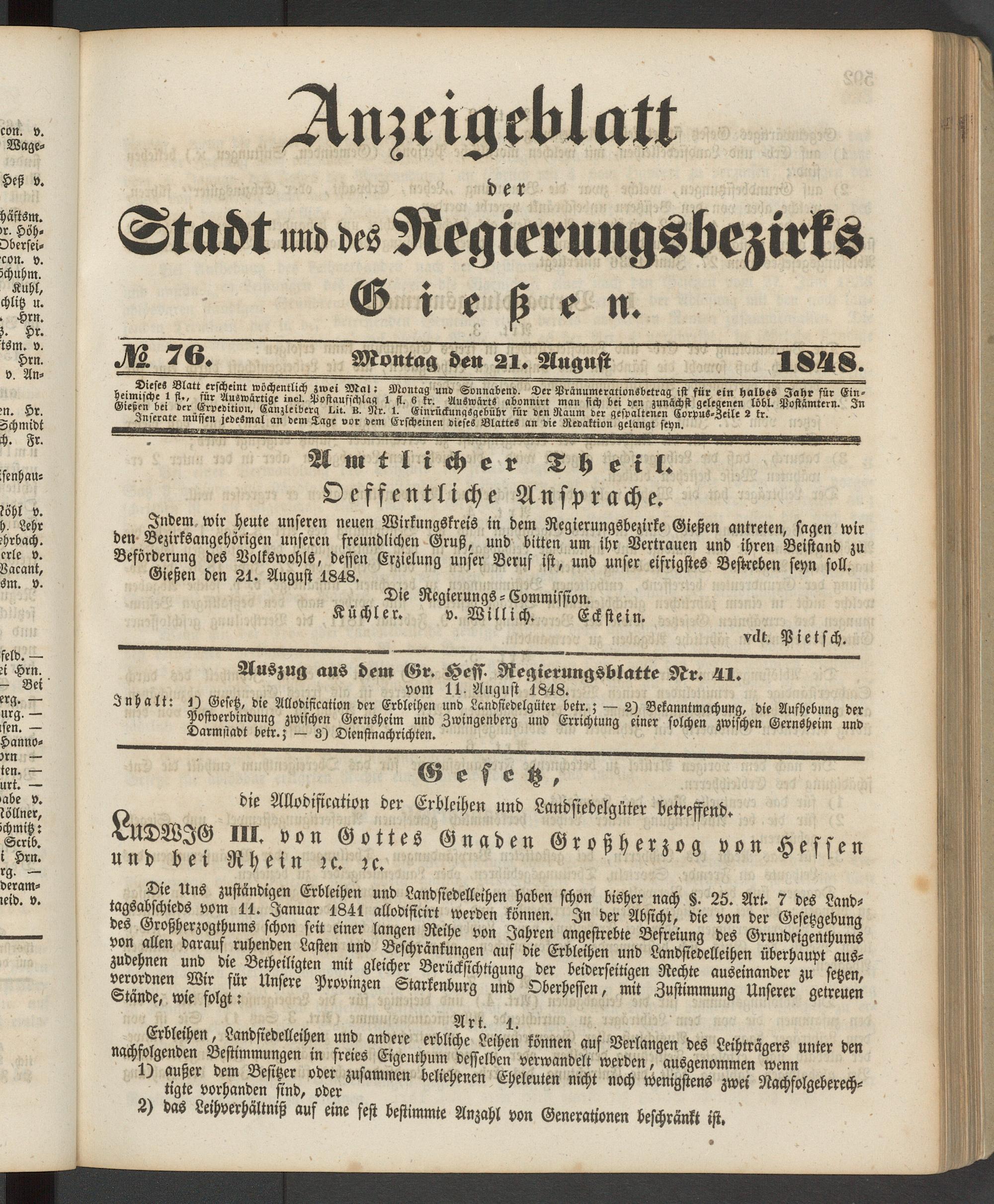 Anzeigeblatt für die Provinzialhauptstadt Gießen. 1840-1867