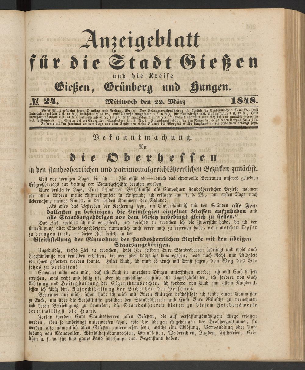 Anzeigeblatt für die Provinzialhauptstadt Gießen. 1840-1867
