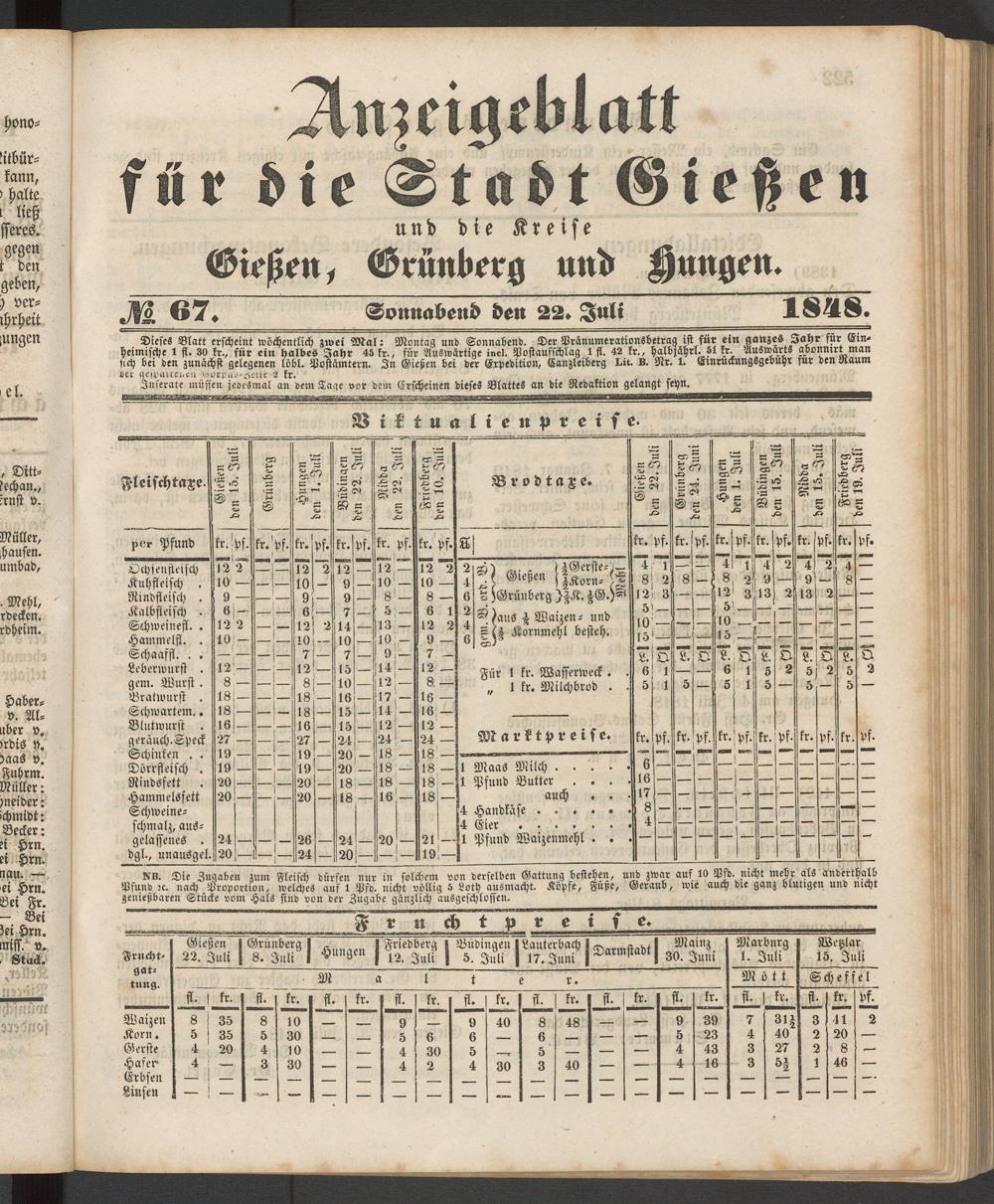 Anzeigeblatt für die Provinzialhauptstadt Gießen. 1840-1867