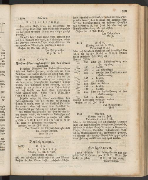 Anzeigeblatt für die Provinzialhauptstadt Gießen. 1840-1867
