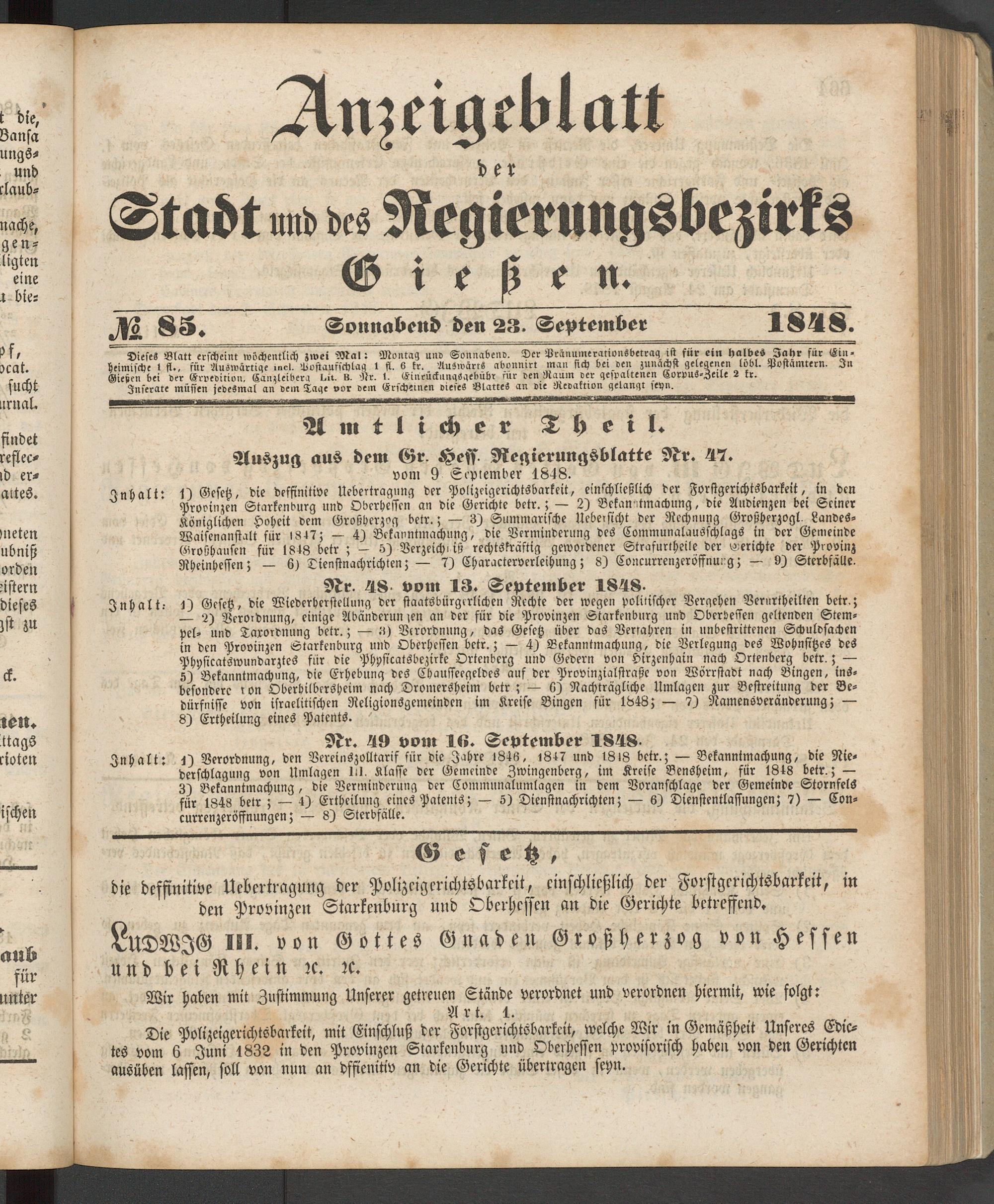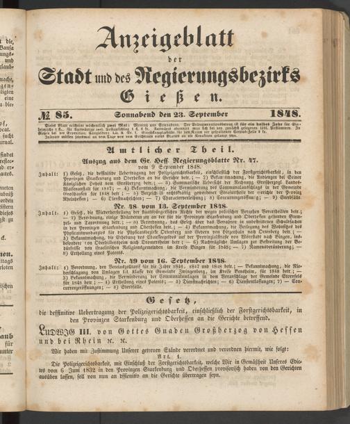 Anzeigeblatt für die Provinzialhauptstadt Gießen. 1840-1867