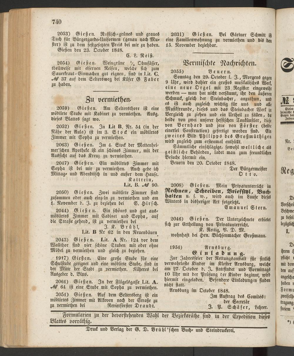 Anzeigeblatt für die Provinzialhauptstadt Gießen. 1840-1867