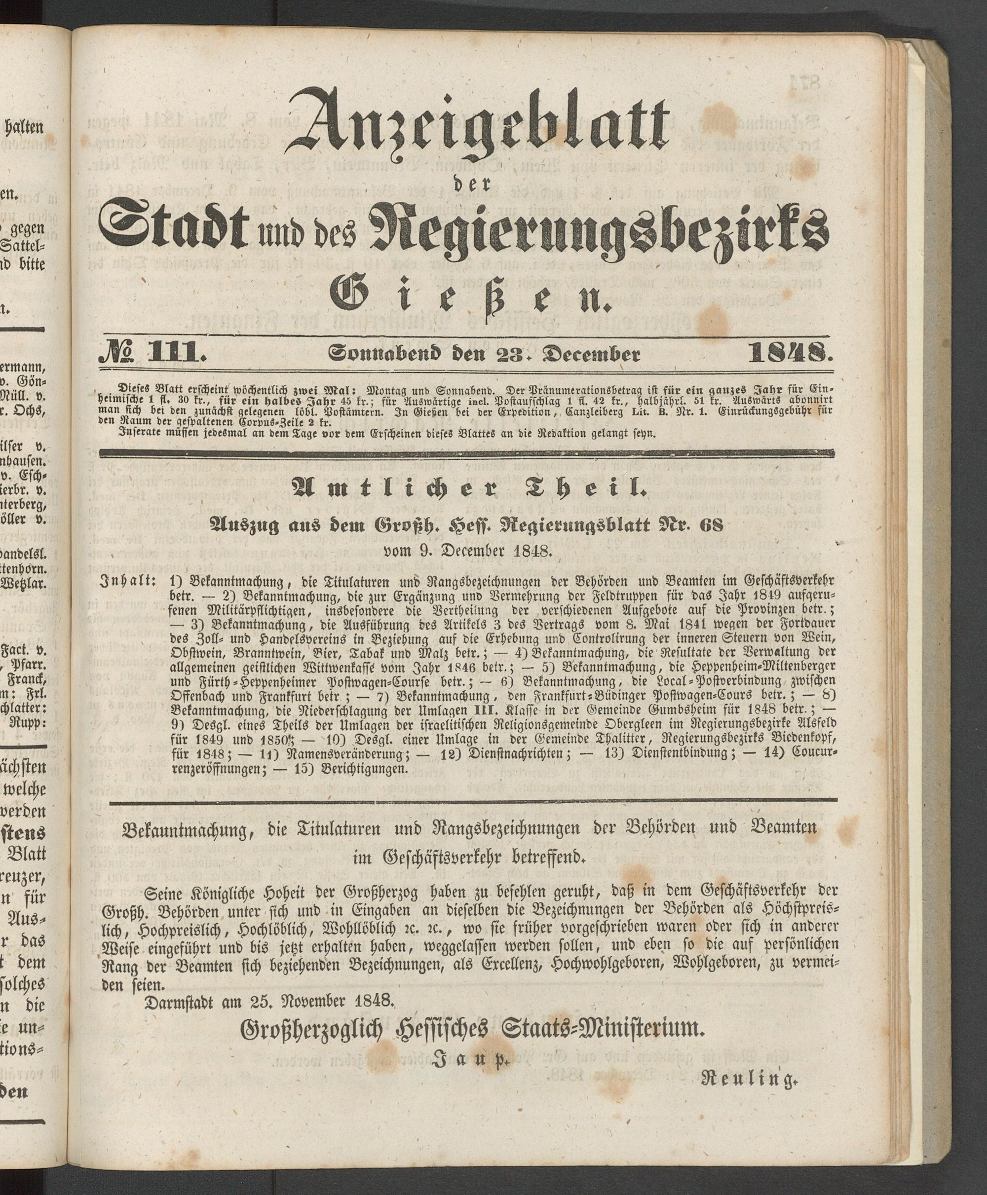 Anzeigeblatt für die Provinzialhauptstadt Gießen. 1840-1867