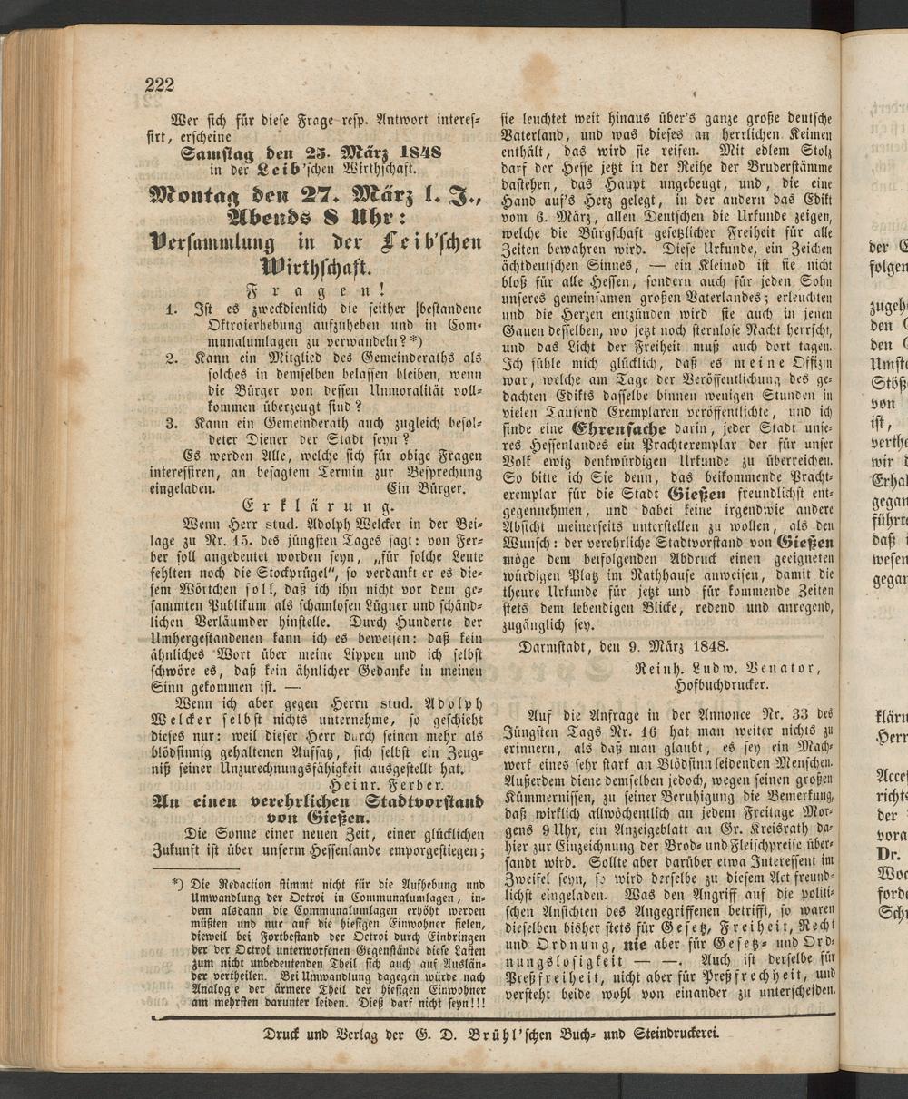 Anzeigeblatt für die Provinzialhauptstadt Gießen. 1840-1867