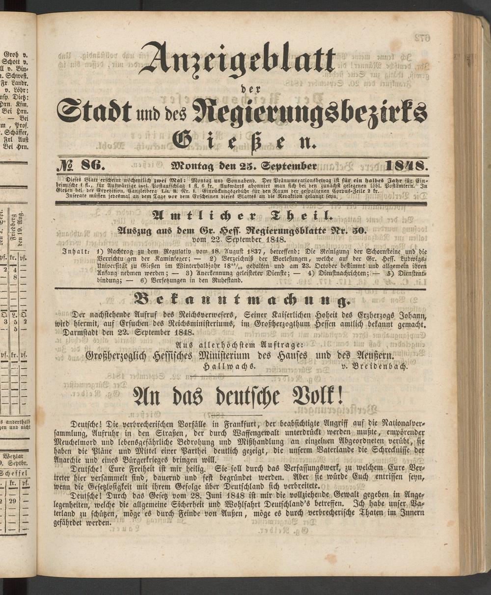 Anzeigeblatt für die Provinzialhauptstadt Gießen. 1840-1867