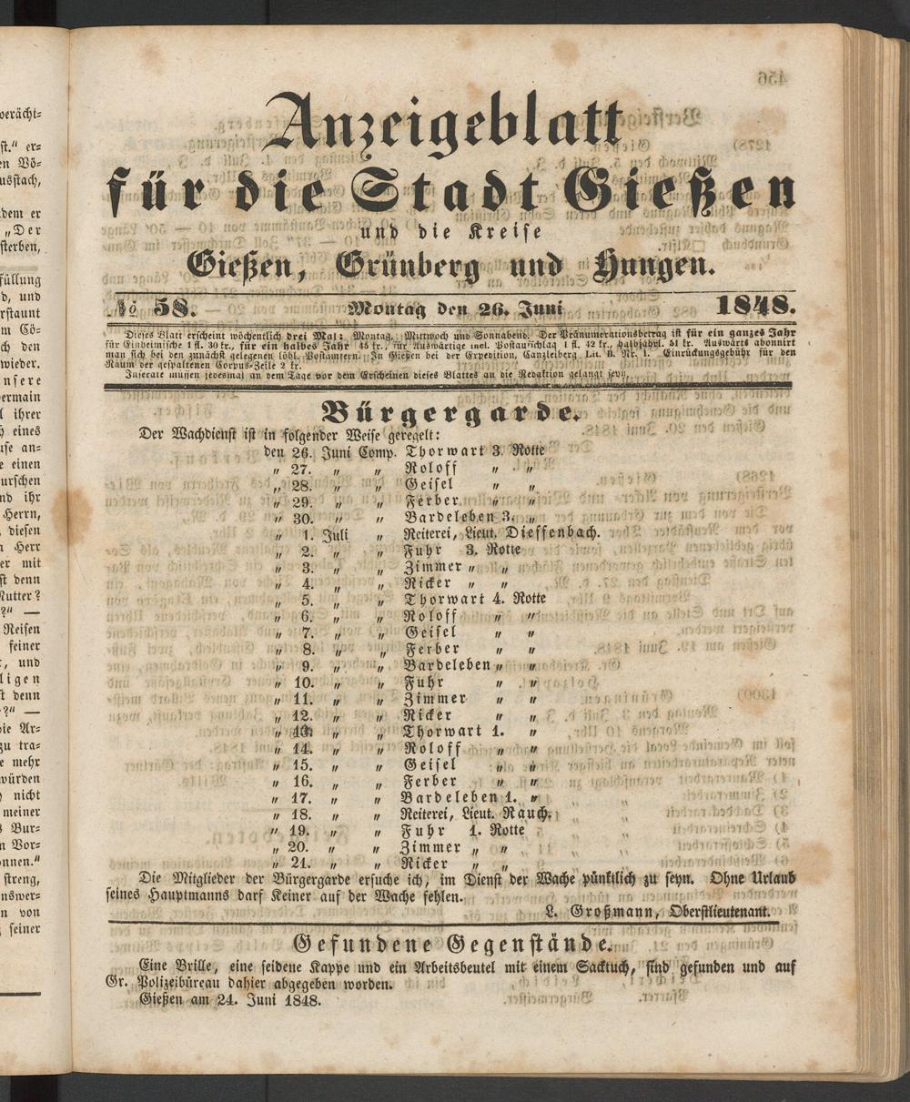 Anzeigeblatt für die Provinzialhauptstadt Gießen. 1840-1867