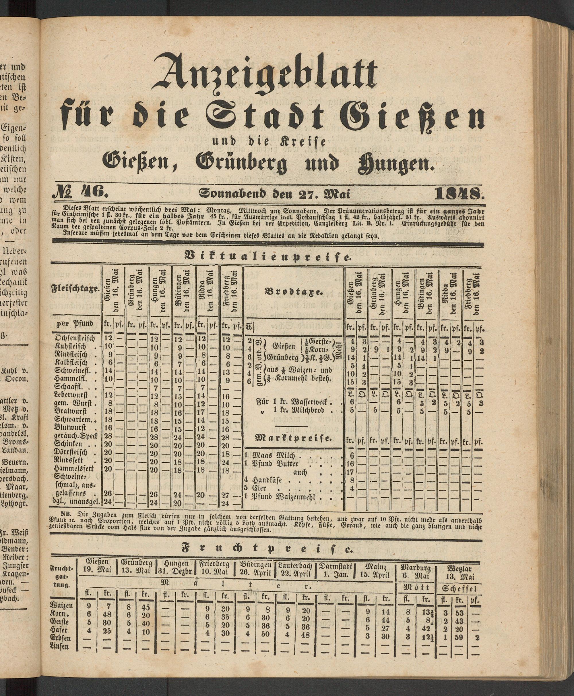 Anzeigeblatt für die Provinzialhauptstadt Gießen. 1840-1867