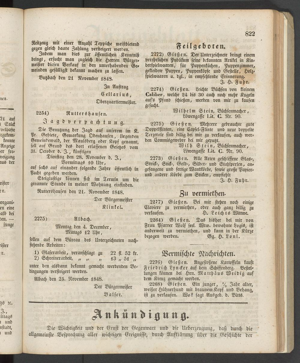 Anzeigeblatt für die Provinzialhauptstadt Gießen. 1840-1867