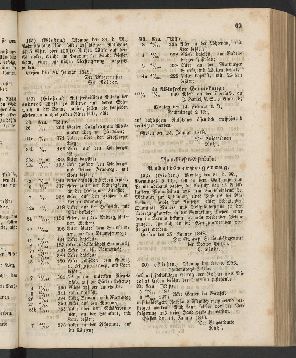 Anzeigeblatt für die Provinzialhauptstadt Gießen. 1840-1867