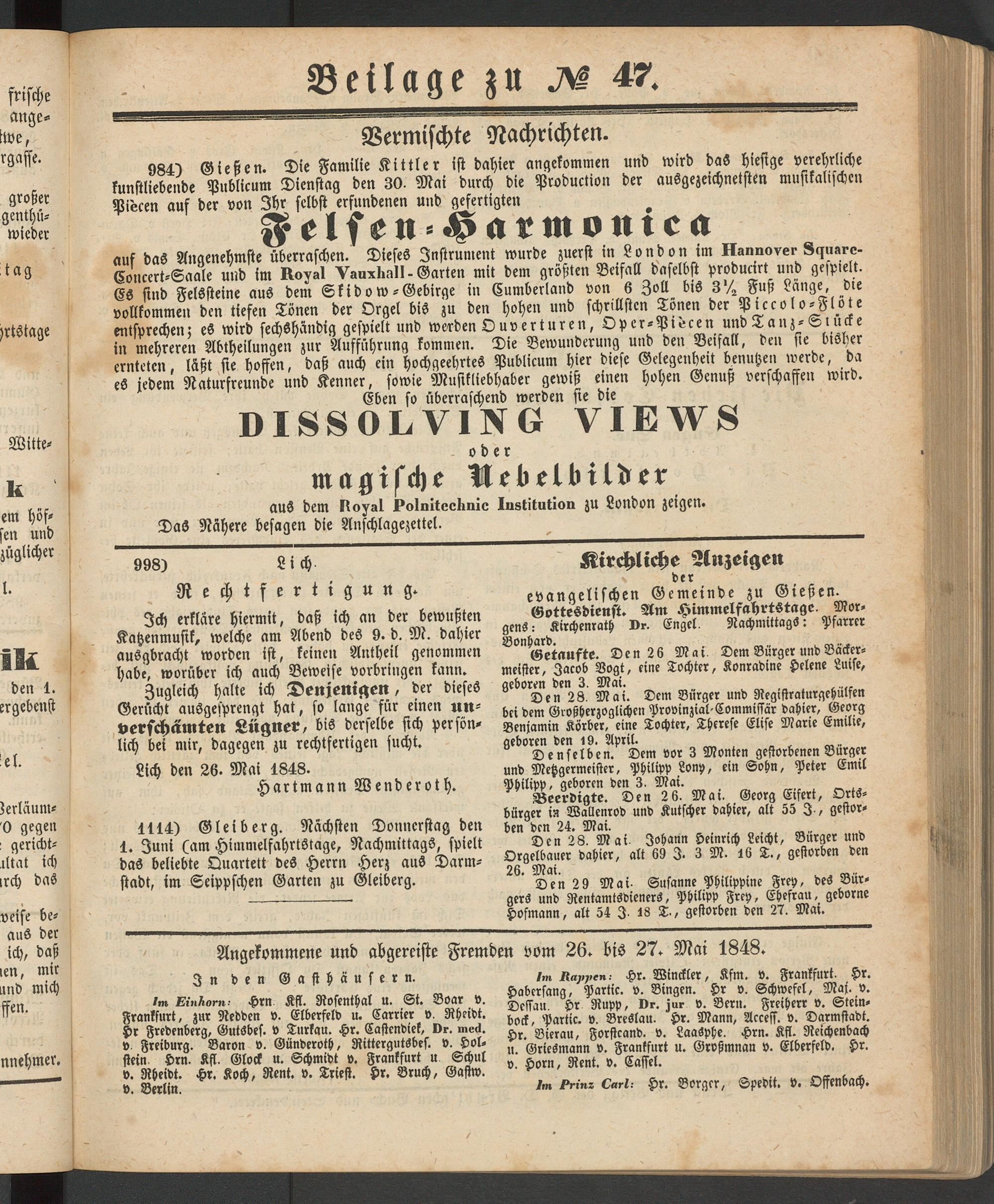 Anzeigeblatt für die Provinzialhauptstadt Gießen. 1840-1867