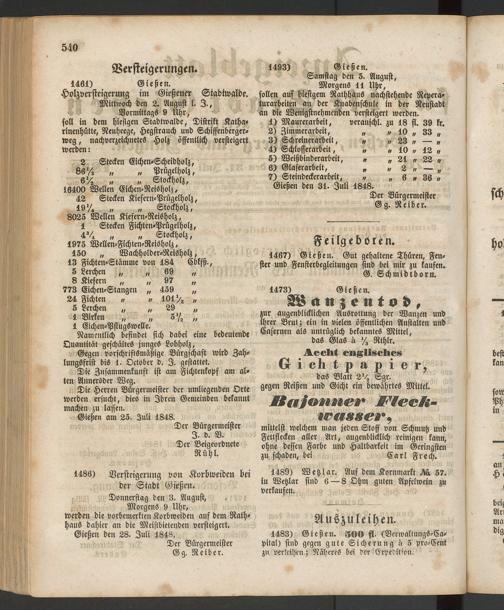Anzeigeblatt für die Provinzialhauptstadt Gießen. 1840-1867