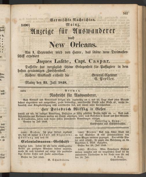 Anzeigeblatt für die Provinzialhauptstadt Gießen. 1840-1867